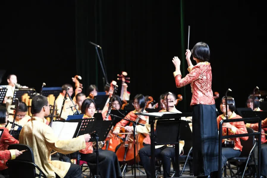 來自馬來西亞檳城大山腳日新國民型中學的學生紀禾渲表示,她非常高興作為一名學生指揮參加這次活動,這段時間她和夥伴們一起努力練習,感到非常幸福和難得。她表示,「因為華樂、因為民樂,我們有了共同的語言。」