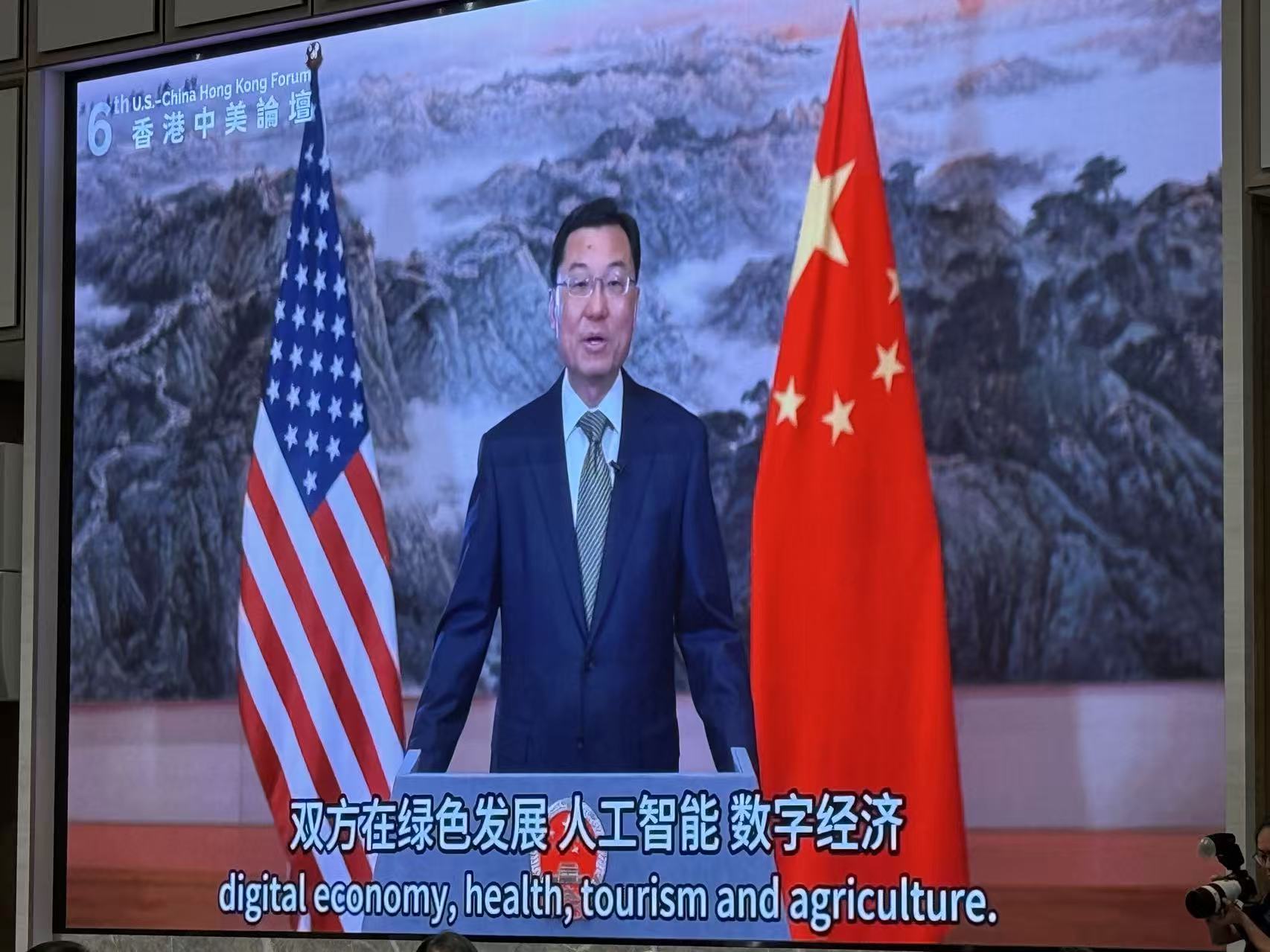 中國駐美國大使謝鋒在會上進行視頻發言。謝鋒強調,推動中美關係健康、穩定、可持續發展,是兩國人民的共同願望,也是國際社會的普遍期待。他在會上分享了三點思考: