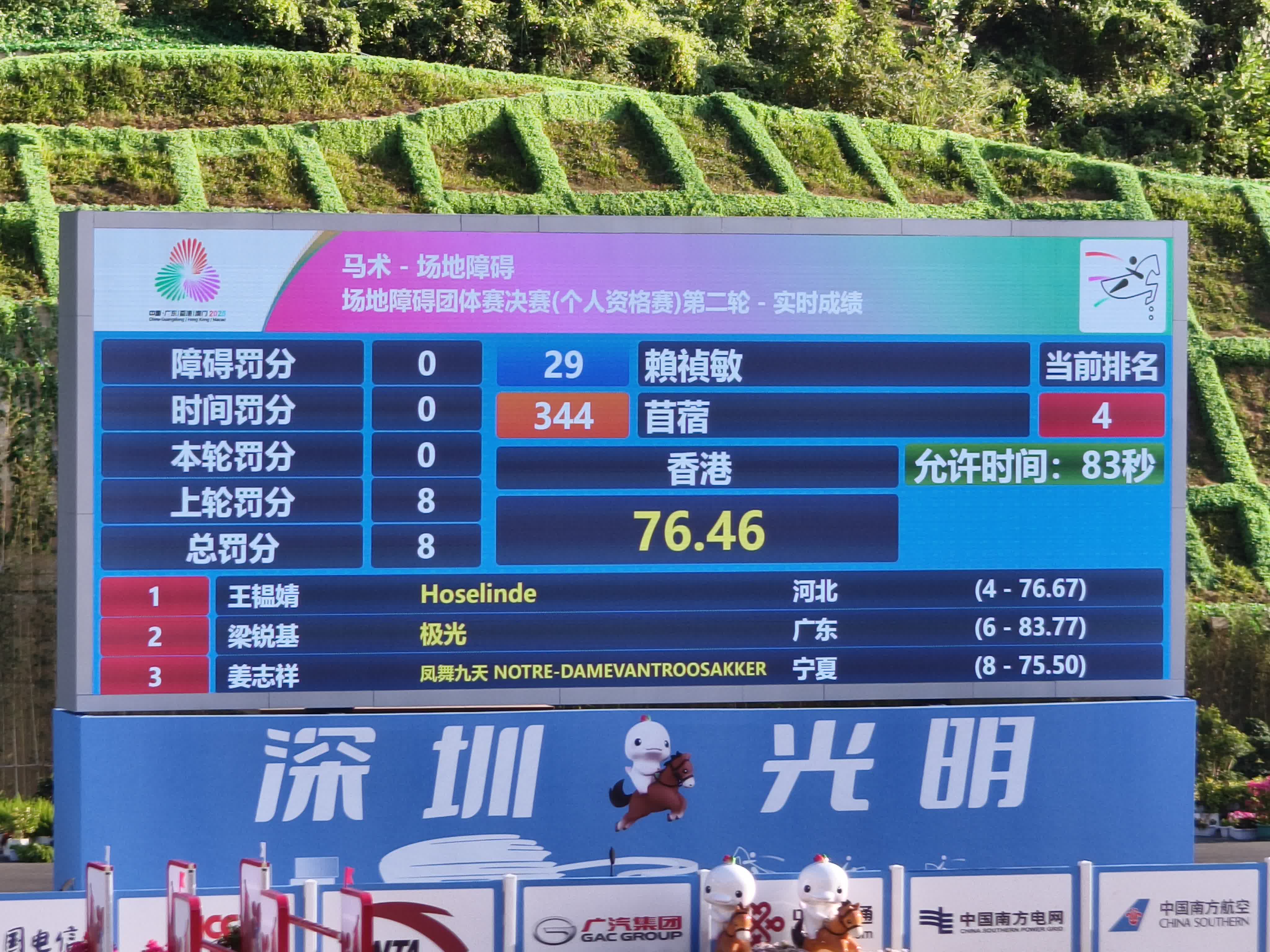 (大公文匯網記者 李薇、胡永愛)十五運會馬術項目場地障礙賽團體決賽第二輪中,港隊小將沈憶淇遺憾落馬,而港隊最後一位出場的賴楨敏未受影響,第二輪罰分為0,表現優異,兩輪共計取得8-76.46的成績。
