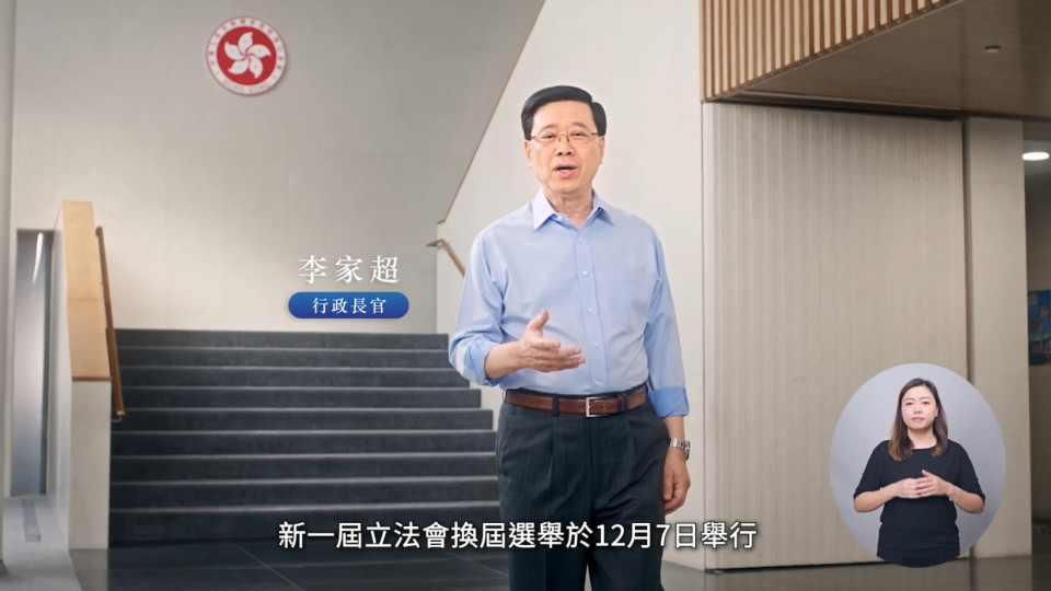 李家超在片中說,新一屆立法會換屆選舉於12月7日舉行,所有選民都應積極履行公民責任,投票選出有能力、有抱負的愛國愛港議員,為香港發展和民生努力打拚。
