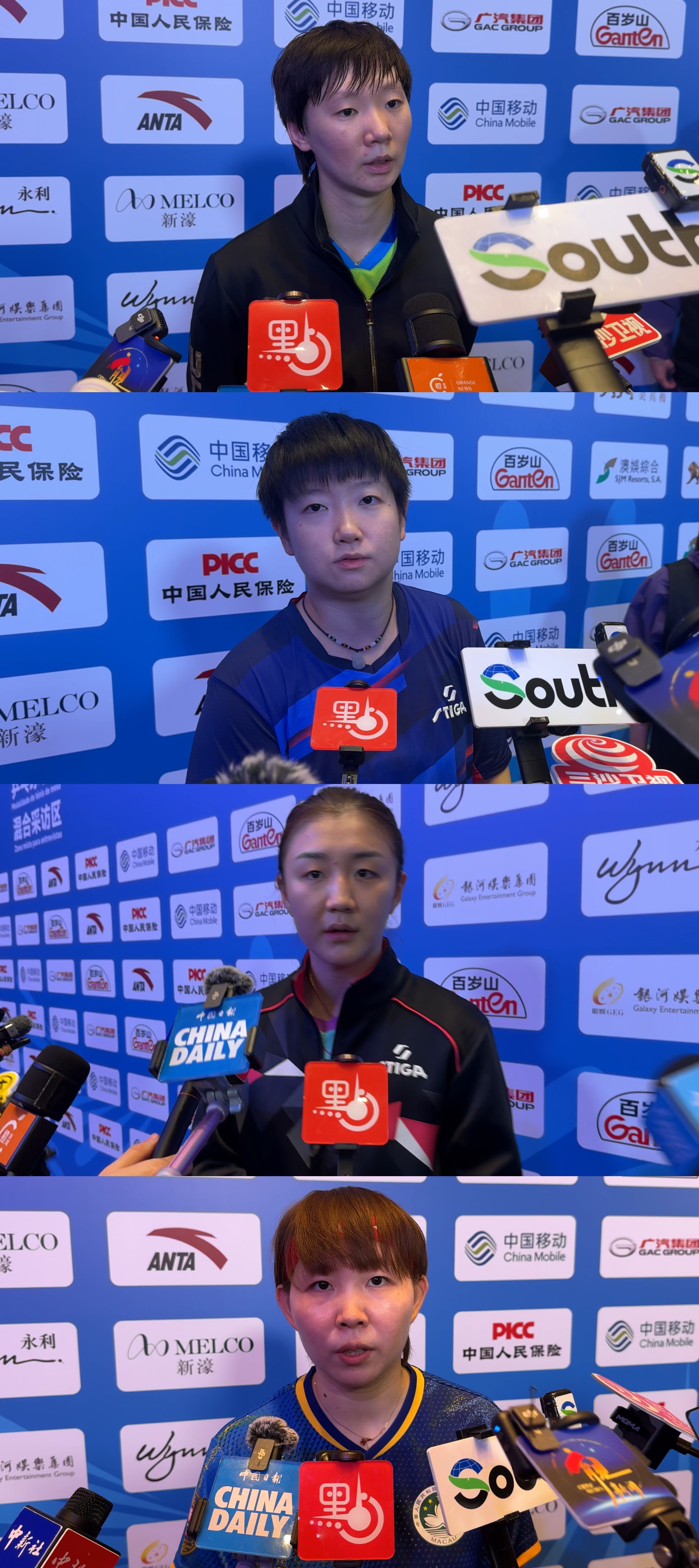 或許有新人光環籠罩,我十分幸運地以絕佳視角拍攝到男女單選手們的精彩回答,其中,更在毫無準備的情況下向孫穎莎提問,直到她看向鏡頭回答時,我才回過神,儘管只是一個簡單問題,但已成為我尚還短暫的記者生涯中濃墨重彩的一筆。之後,我定下目標,希望能勇敢再向其他選手提問。到了決賽日的4強採訪時,幸運再度降臨,我把握時機向前「世一」朱雨玲問出事先於心中反覆練習的問題,並得到真誠的答覆。此時,我深刻感受到語言所傳遞的力量,也明白記者的意義之一是記錄這些「力量」再傳遞給大眾。
