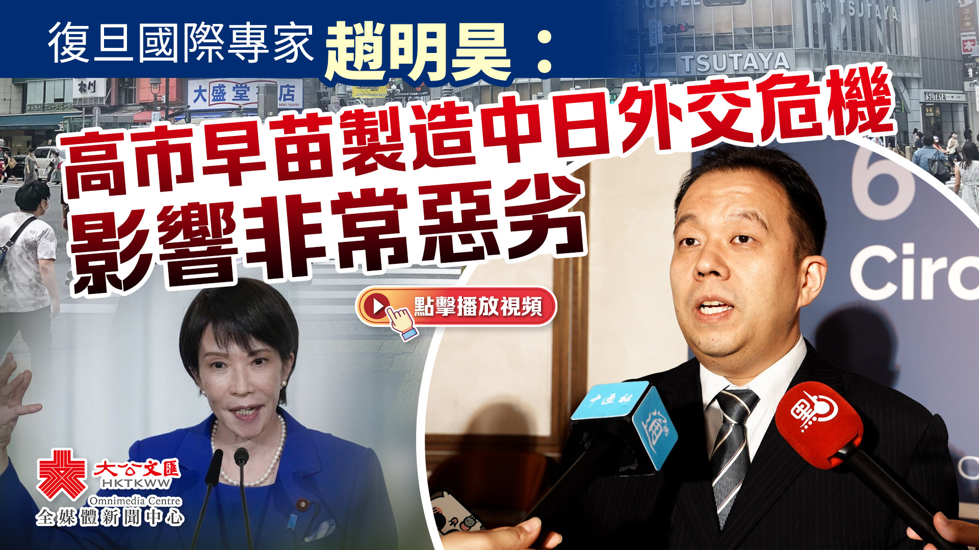 大公文匯全媒體記者劉鴻霖報道,中美交流基金會於11月17至18日在港舉辦一年一度的「香港中美論壇」。復旦大學美國研究中心教授趙明昊出席論壇,就近期中日關係接受點新聞記者採訪,指高市早苗發表涉台錯誤言論實際上是在製造一場中日之間新的外交危機,非常損害中日關係的戰略穩定。