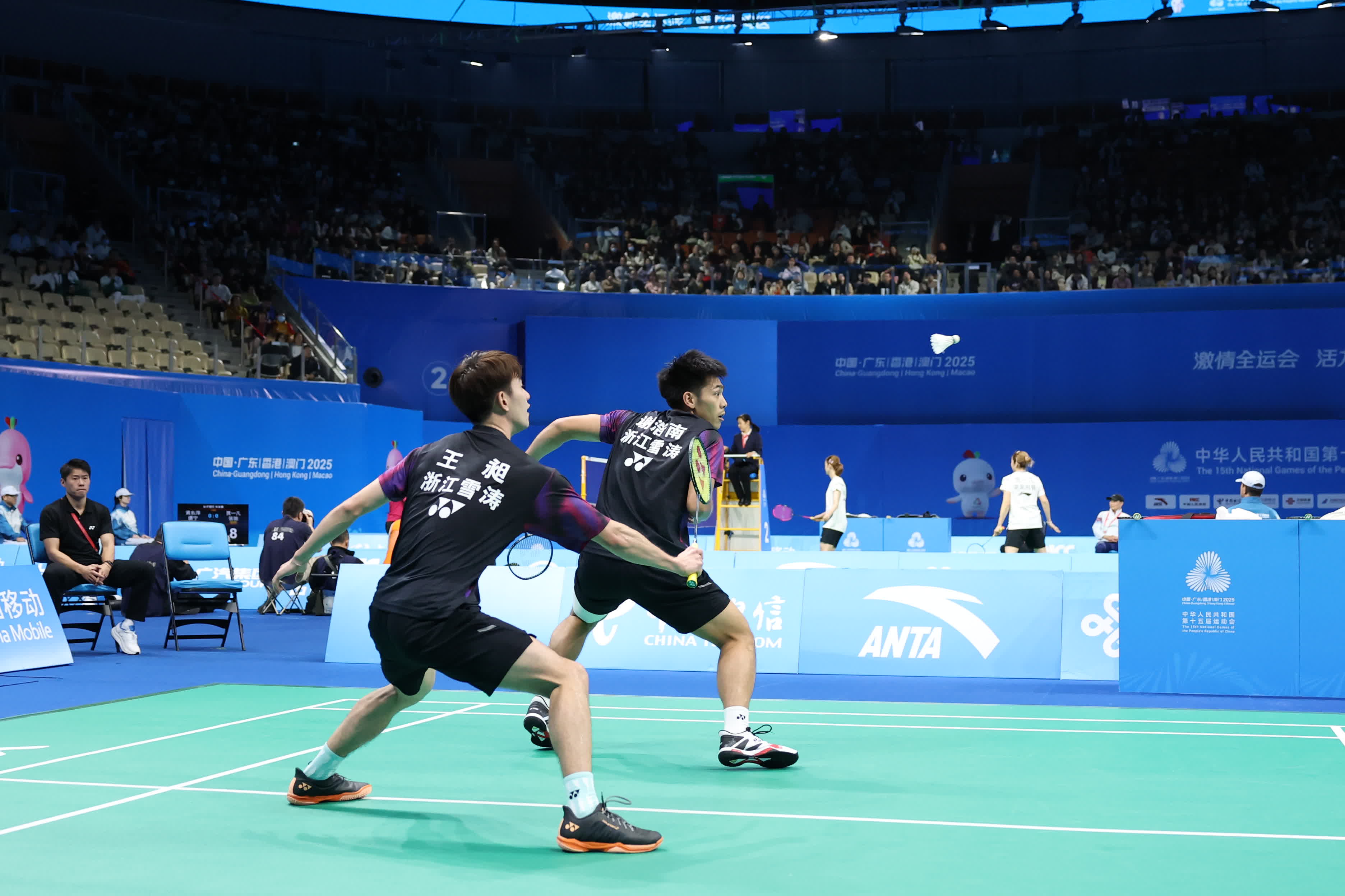 (大公文匯網 記者 林奕彤)在今日(18日)第十五屆全運會羽毛球男雙半決賽中,浙江組合王昶/謝浩南以21-12、21-9直落兩局擊敗福建隊歐烜屹/何濟霆,全程保持高壓態勢。