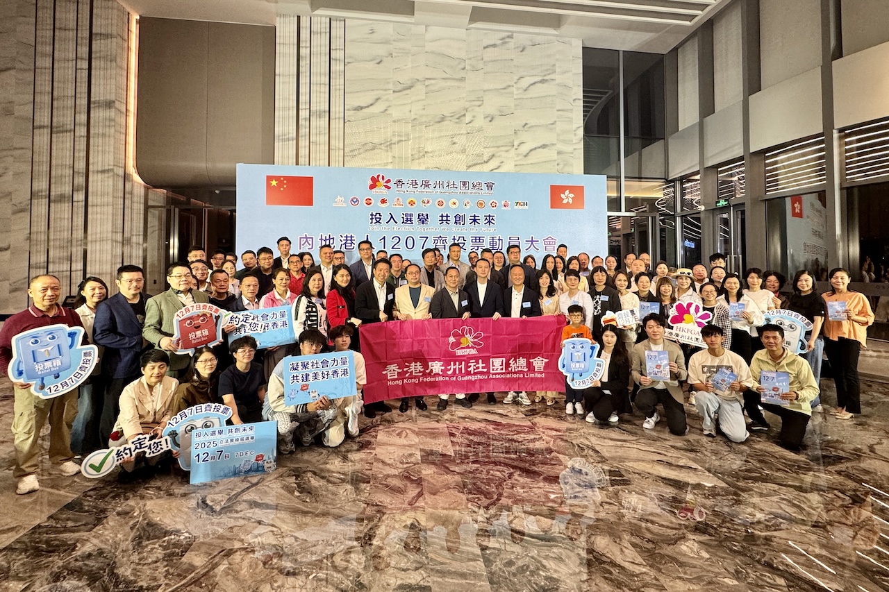 (大公文匯網記者李紫妍 廣州報道)「投入選舉,共創未來!1207 返香港投票!」為號召內地港人積極參與並支持香港特別行政區第八屆立法會選舉,一系列換屆選舉宣傳活動近期在廣東各地陸續開展。日前,「內地港人1207齊投票動員大會」在廣州南沙舉辦,現場匯聚了在穗港人、港商代表及各類社團商會組織負責人。大家齊聲發出倡議,呼籲廣大內地港人12月7日踴躍返港投票,共創美好香港未來。