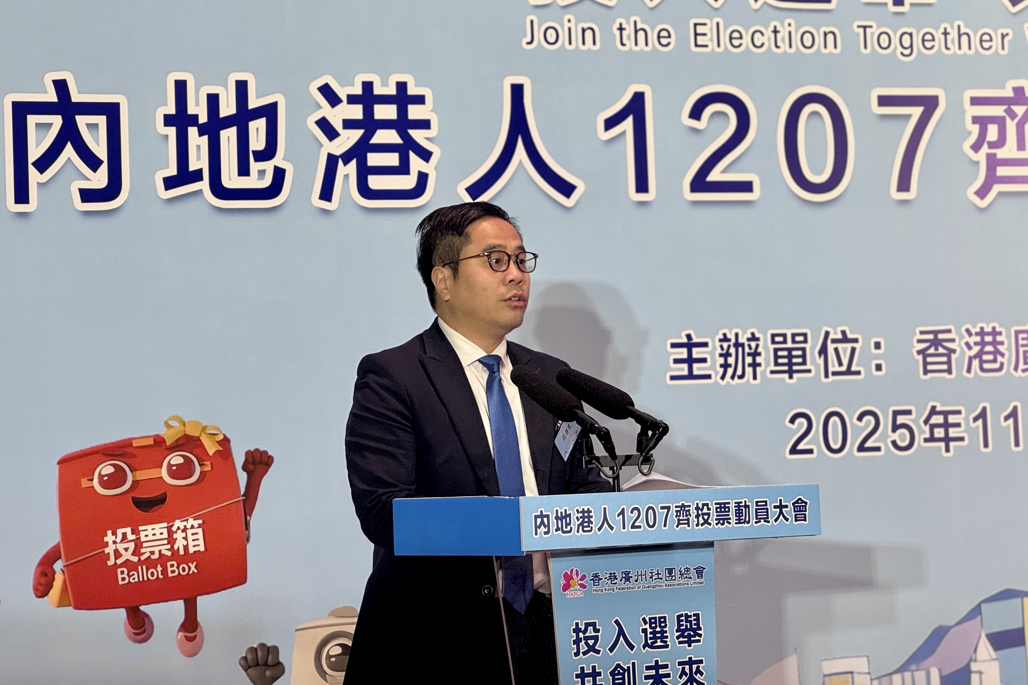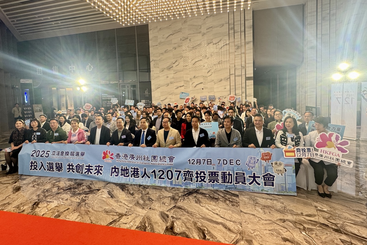 「香港的明天需要我們每一位的參與守護。立法會選舉不是少數人的事,而是每一位市民共同謀劃香港未來的重要時刻。」香港廣州社團總會主席、香港建韜集團執行董事張廣軍表示,本屆立法會選舉是香港特區完善選舉制度後的又一次重要實踐,候選人中既有願為市民服務的連任議員,也有來自新興產業、科創領域以及基層社區的新生力量,是香港社會多元共進、專業治理的真實寫照。張廣軍還現場做出表率,宣布將為集團在內地的港籍員工提供投票當日的假期、往返車費報銷等,支持其履行義務返港投票。同時,他還呼籲更多港商港企為在內地的香港員工回港投票提供便利。