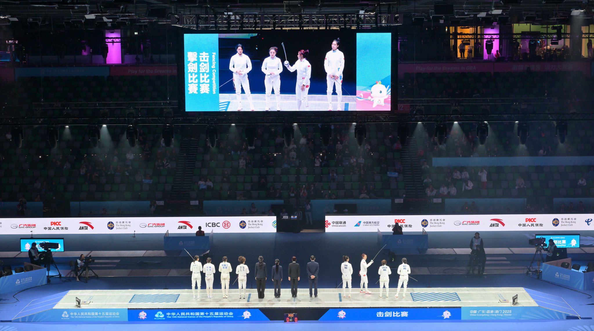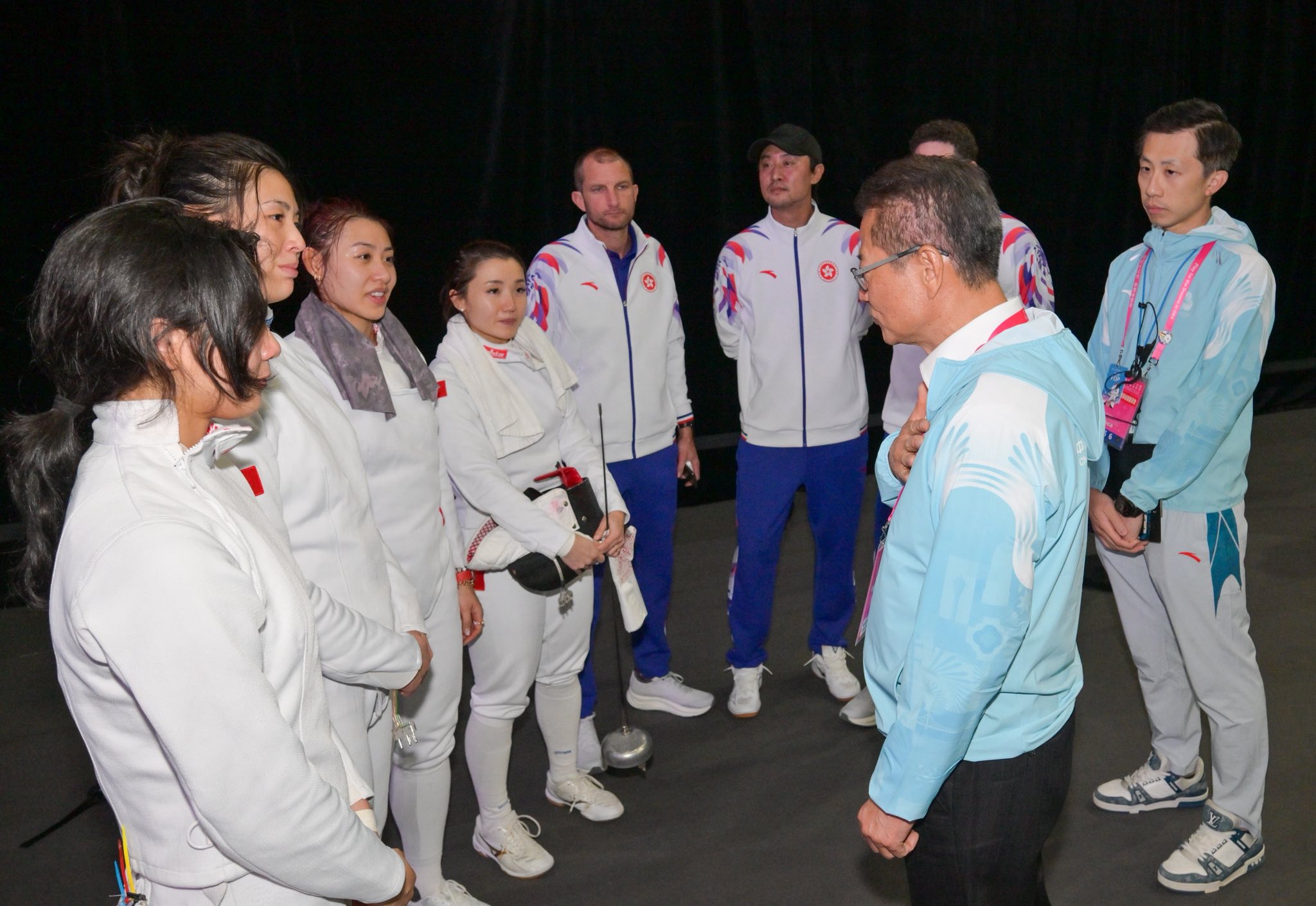 由佘繕妡、吳海諦、陳渭泠及朱嘉望組成的香港女子重劍隊,在比賽中全力以赴、奮力爭勝,儘管最終不敵北京隊,但她們的拼搏精神與優異表現,仍贏得全場觀眾的敬佩與掌聲。陳茂波在賽後親自向運動員表達感謝,勉勵她們繼續努力,再創佳績。