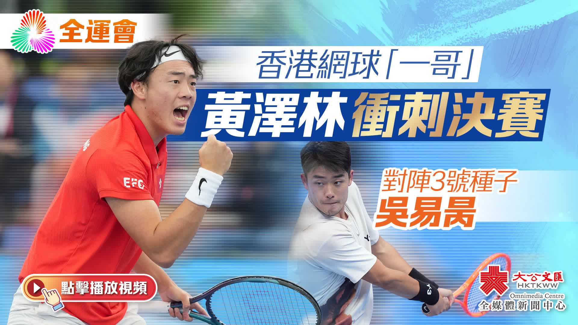 (大公文匯網記者 方俊明 珠海報道)十五運會網球男子單打賽事今日(11月19日)繼續在橫琴國際網球中心上演。香港網球「一哥」黃澤林18日晉級男單四強後,今天向決賽衝刺,對陣浙江選手吳易昺。在本屆全運會,黃澤林、吳易昺分別位列2號種子、3號種子,他們之間的角逐備受矚目。