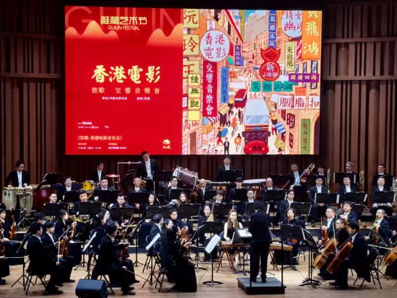 10月24日至11月2日,2025第四屆桂林藝術節在桂林舉行。作為本屆桂林藝術節最後一台壓軸演出,「飲歌——香港電影交響音樂會」2日晚在灕江歌劇院奏響,共演奏了14首香港電影歌曲(含返場2首),無一不是香港電影史上的配樂佳作,多個作品出自黃沾和顧嘉輝的「輝煌組合」。