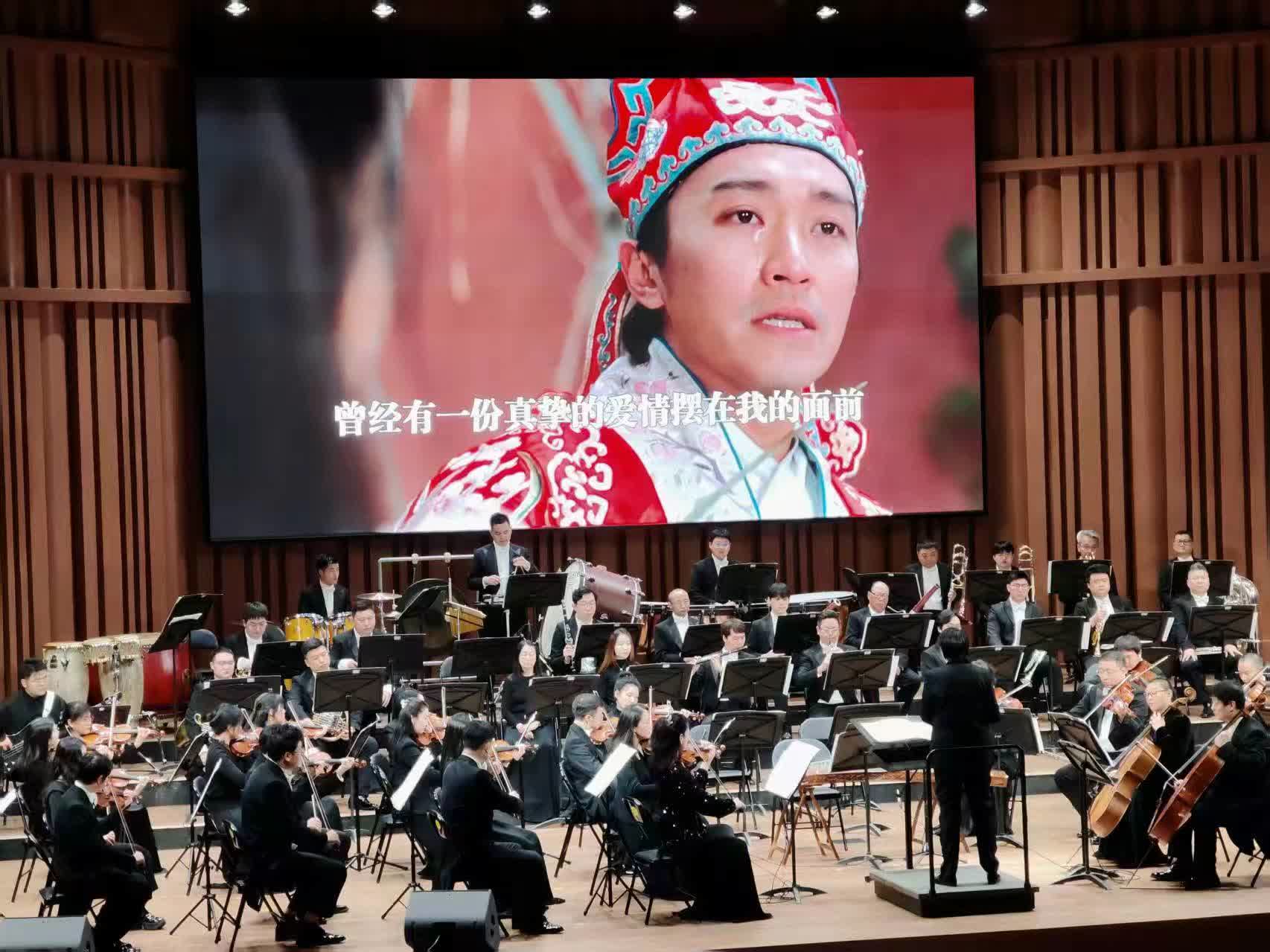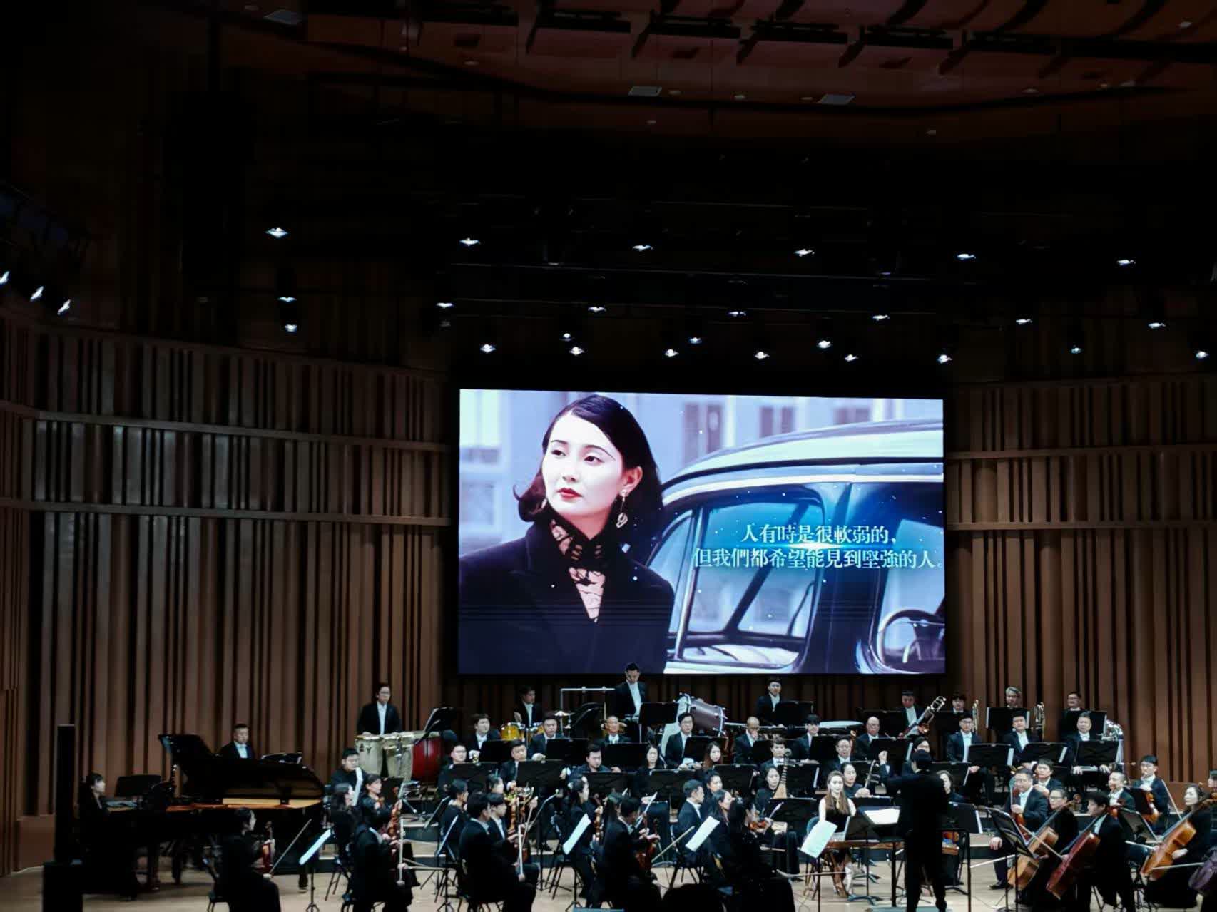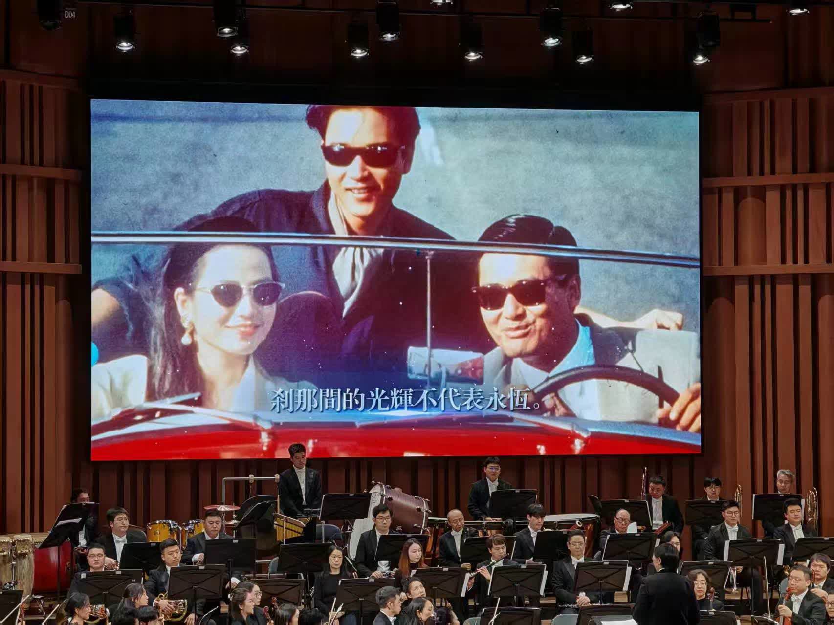 隨着指揮棒的揮動,香港電影《笑傲江湖》中「滄海一聲笑」的樂曲響起,樂隊背後的大屏幕上,閃過午馬和林正英扮演的正邪兩大長老琴簫合奏的鏡頭……一首首耳熟能詳的電影樂曲的音符流淌而過,大屏幕上閃過許冠傑、張學友、葉童、張敏、張曼玉、周潤發、張國榮、梅艷芳、王祖賢、梁家輝、周星馳、劉德華……30多年前的香港明星們恰是風華正茂,那是一個「神仙打架」的年代。