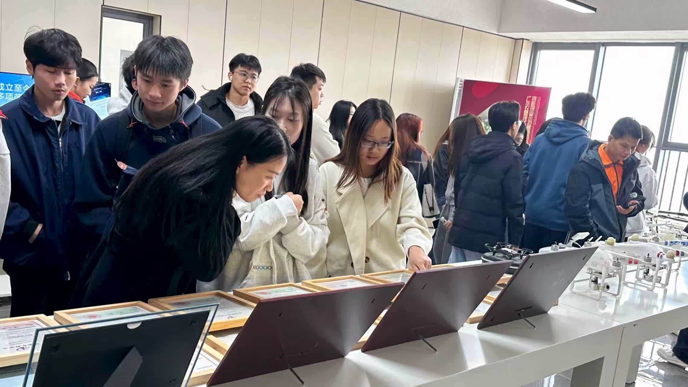 在一樓戶外展示區,元基創新陳總現場操控了曾參與梅大高速塌方應急搶險的低空航天器模型。青年代表們近距離觀摩了這些「空中力量」的實戰演示,對其在應急救援及未來農業場景中的實際運作有了更加直觀的認識。