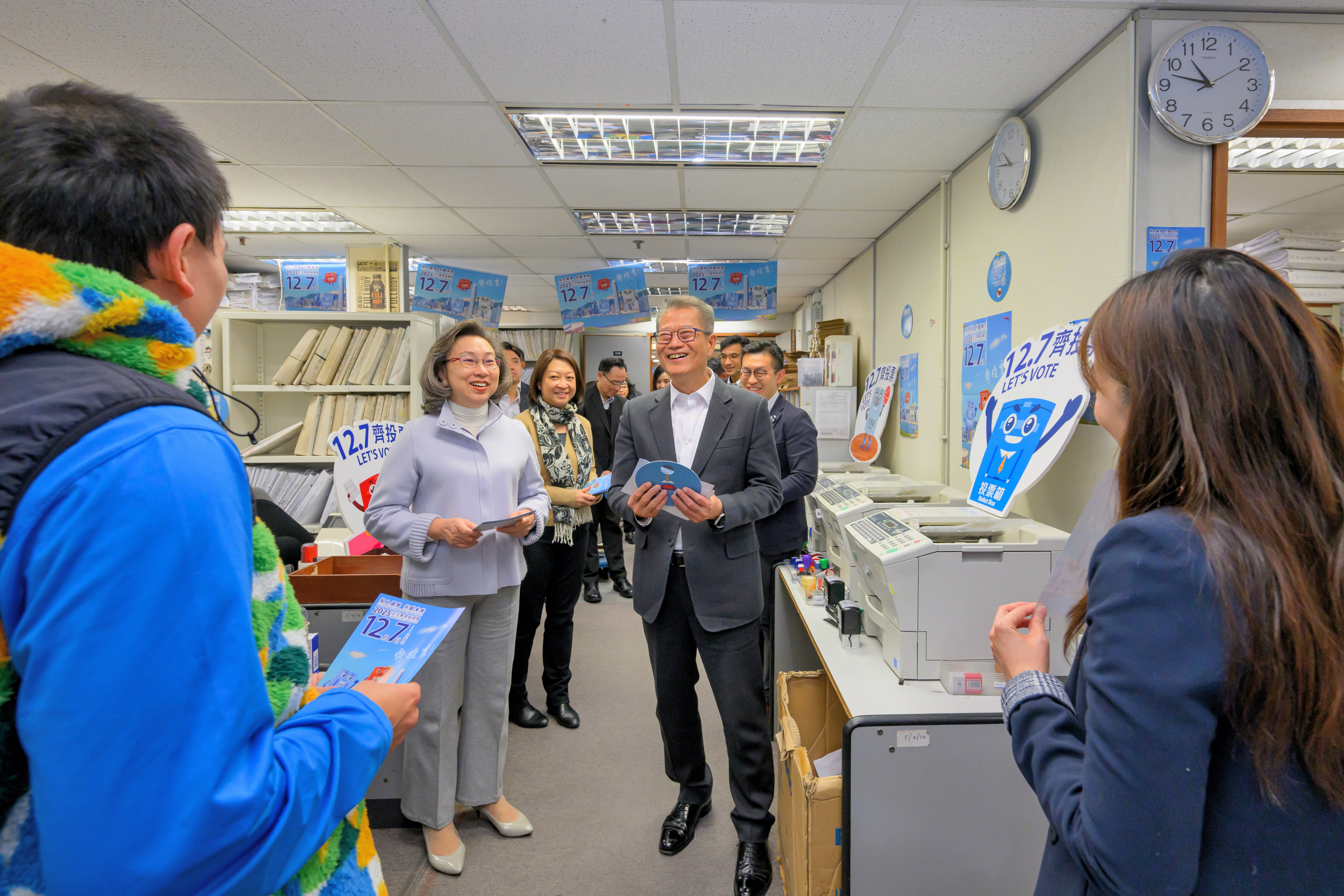 財政司司長陳茂波、律政司司長林定國資深大律師及公務員事務局局長楊何蓓茵於十一月二十日到訪灣仔政府辦公室宣傳,呼籲公務員在十二月七日立法會選舉齊投票。