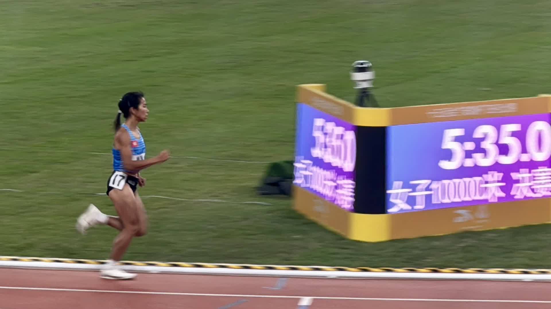 現場可見,在該賽事過半選手都是「00後」的一眾高挑年輕運動員中,唯一「80後」選手姚潔貞在身高、年齡方面都不佔優勢,萬米長跑鳴槍後,她逐漸落後於大部隊,開啟了一場「孤獨的」自我作戰,但她每一圈的步伐都仍十分堅定,展現出超強的體育精神,令人動容。雖然跑在最後一名,但她並沒有受影響,臉上始終保持着堅毅而平靜的神情。