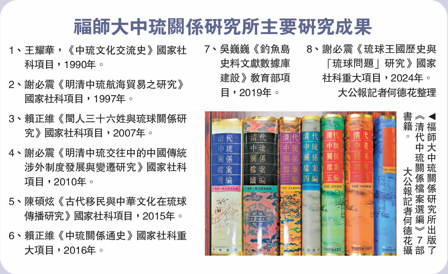 福建師範大學中琉關係研究所已成立30周年,是國內目前唯一以中琉關係作為研究對象的研究機構,編纂出版了《清代中琉關係檔案選編》7部、《琉球文獻史料彙編》2卷,以及中琉關係研究著作20餘部。