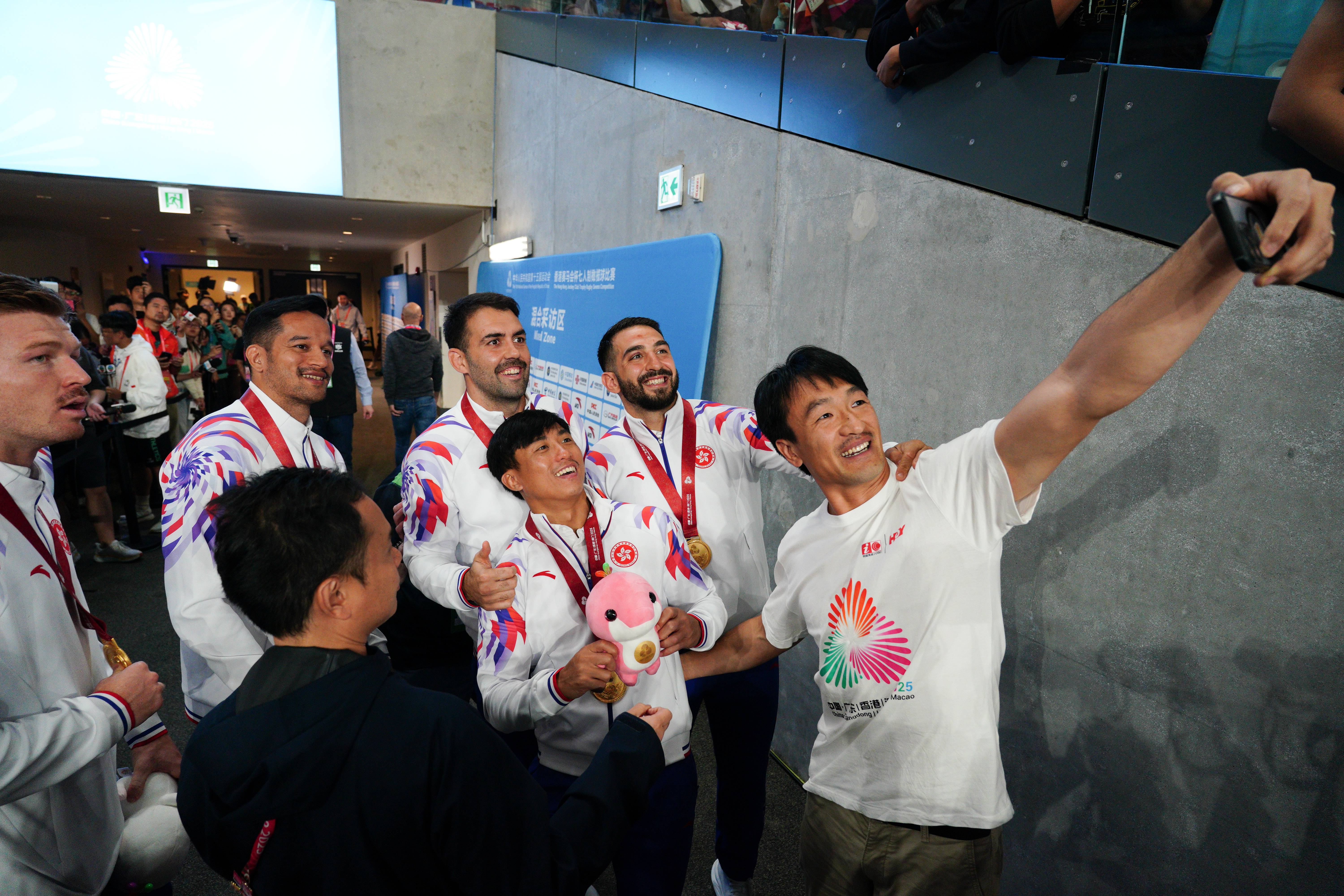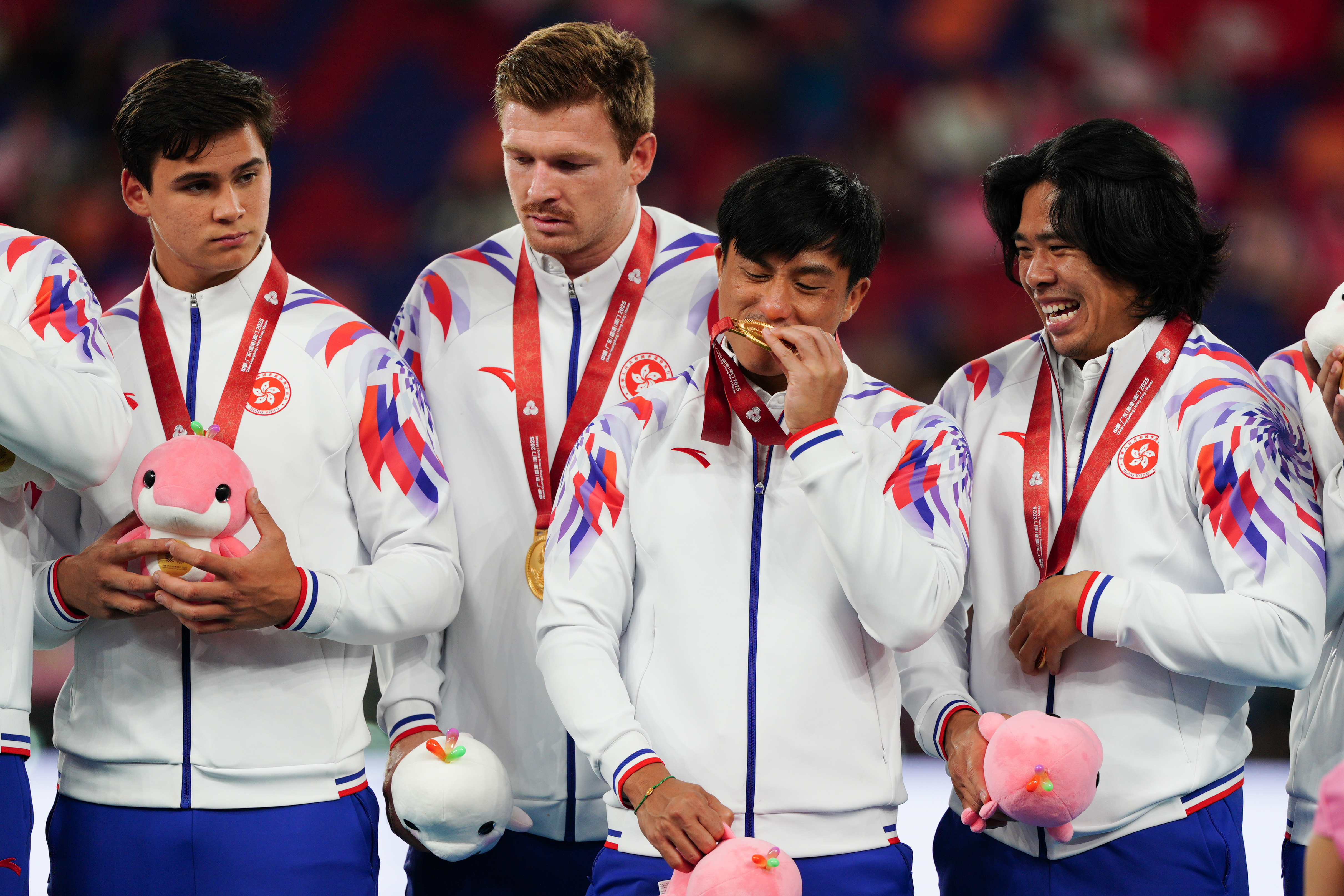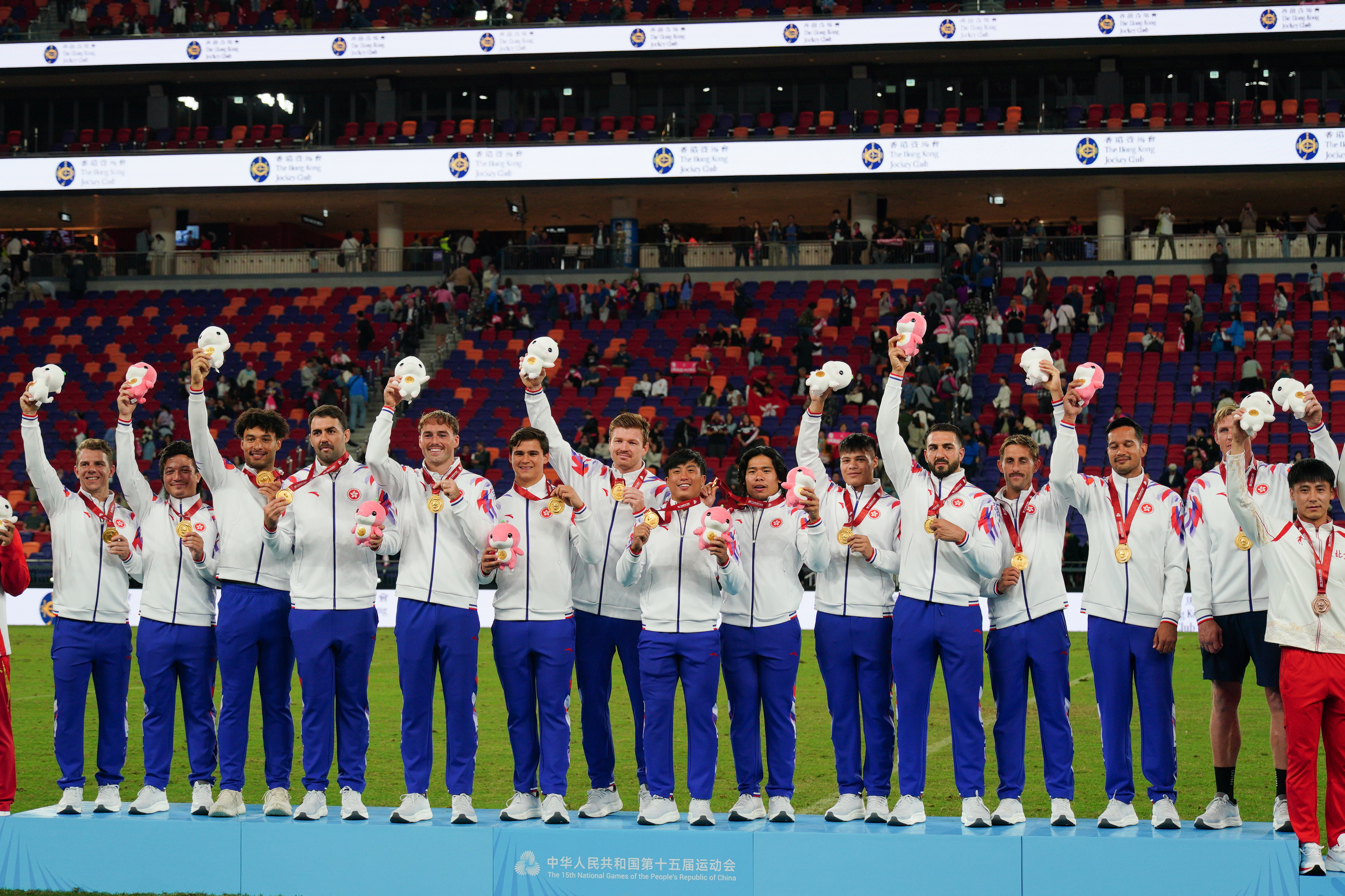 11月14日,港隊男子七欖在啟德主場館主場迎戰「三冠王」山東隊,最終以26∶19勇奪金牌。這不僅是香港首次在全運會七人欖球項目摘得金牌,亦是港隊在今屆全運會香港賽區贏下的首面金牌。
