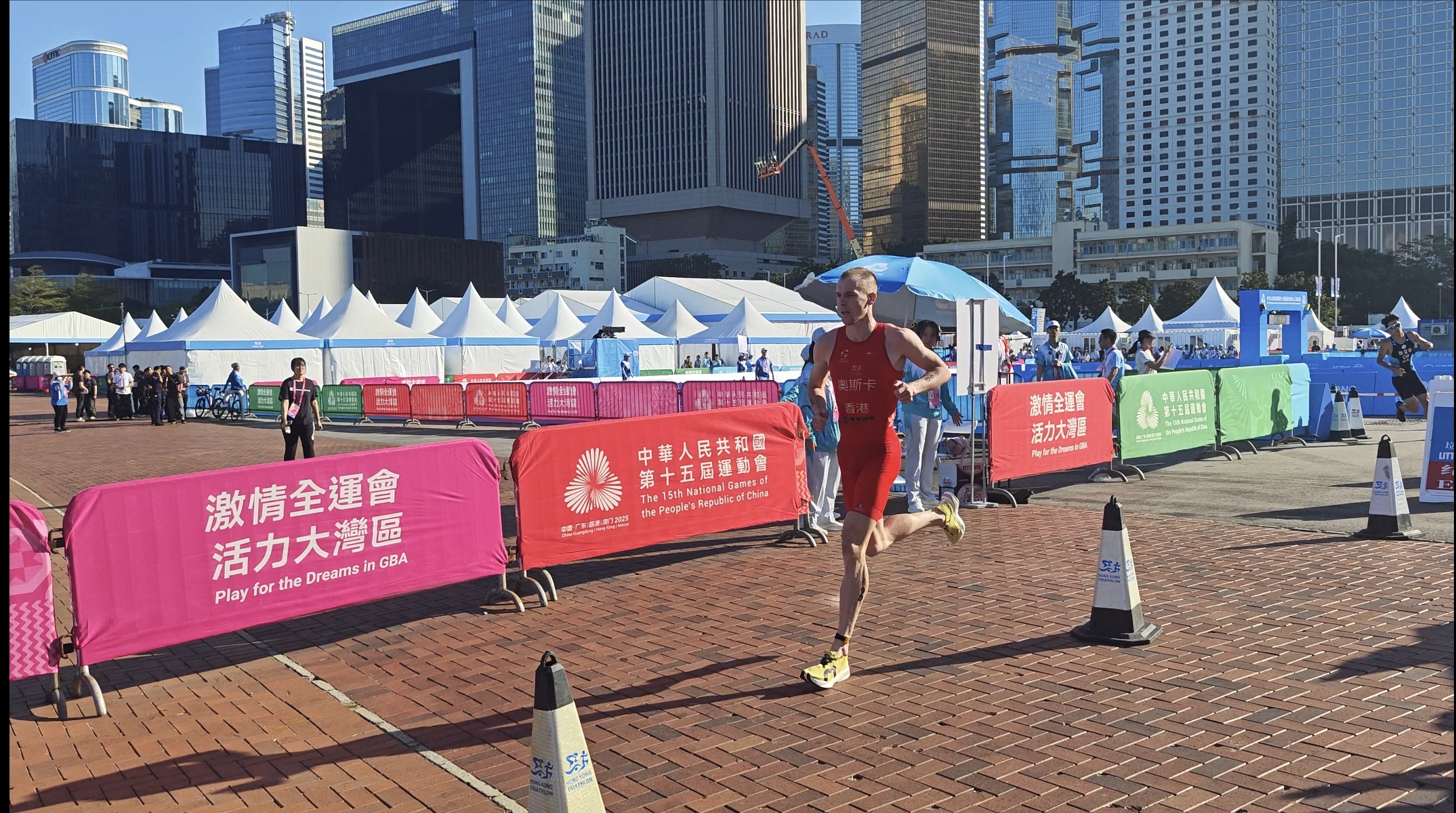 11月15日,在全運會鐵人三項男子個人賽中,港隊代表奧斯卡不負眾望,以1小時49分21秒的成績在比賽中勇奪銅牌,這是繼2009年李致和後,港隊再有鐵人三項選手站上全運會個人賽頒獎台。