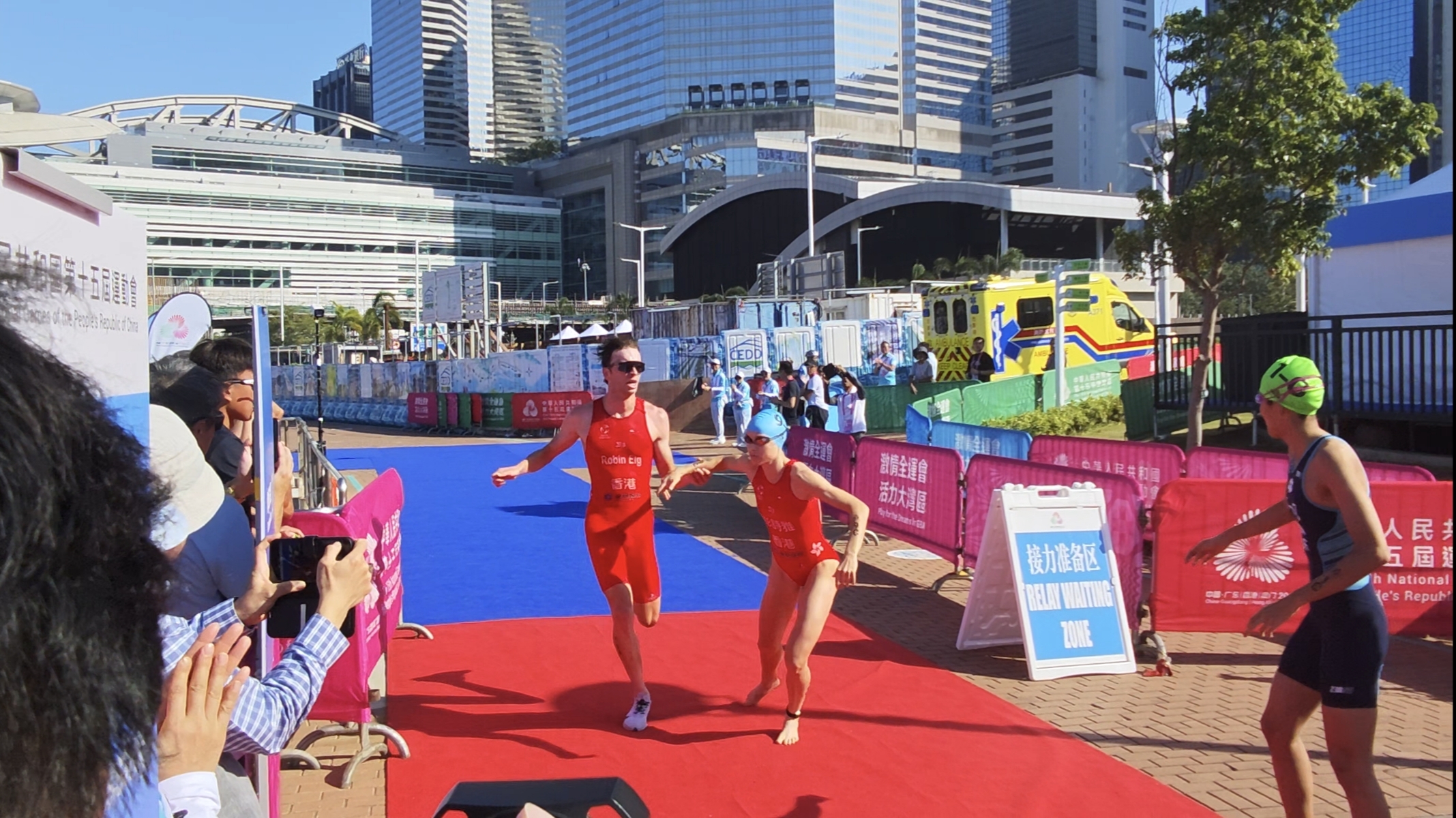 11月16日,港將奧斯卡﹑Robin Elg﹑韋祺和彭詩雅在鐵人三項混合接力賽中攜手摘銀。港隊女將韋祺打頭陣,開場後逐漸領先,並以頭名交棒給第二棒的Robin Elg,並逐漸擴大領先優勢;至第三棒游泳段,公安隊黃安琪一連超過數名選手,來到第一位;最後一棒,港將奧斯卡追至第二位衝線,港隊最終總用時1小時24分16秒,慢山東隊11秒獲得亞軍。