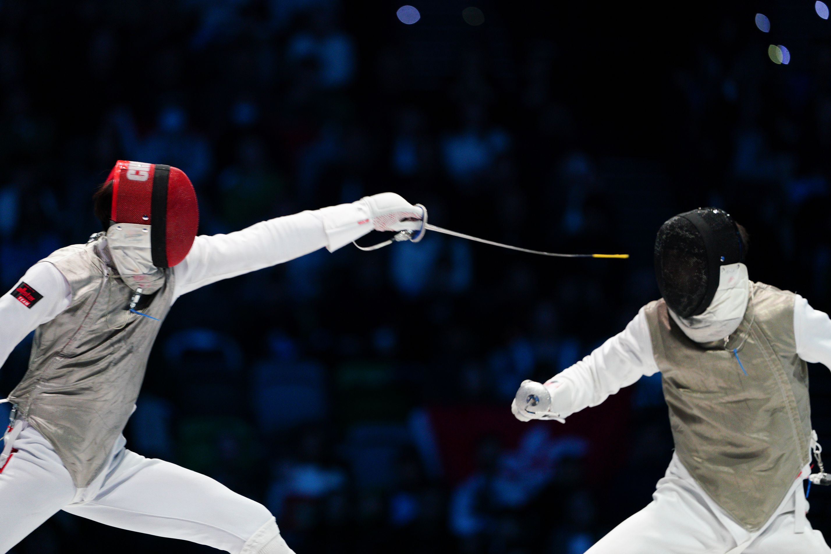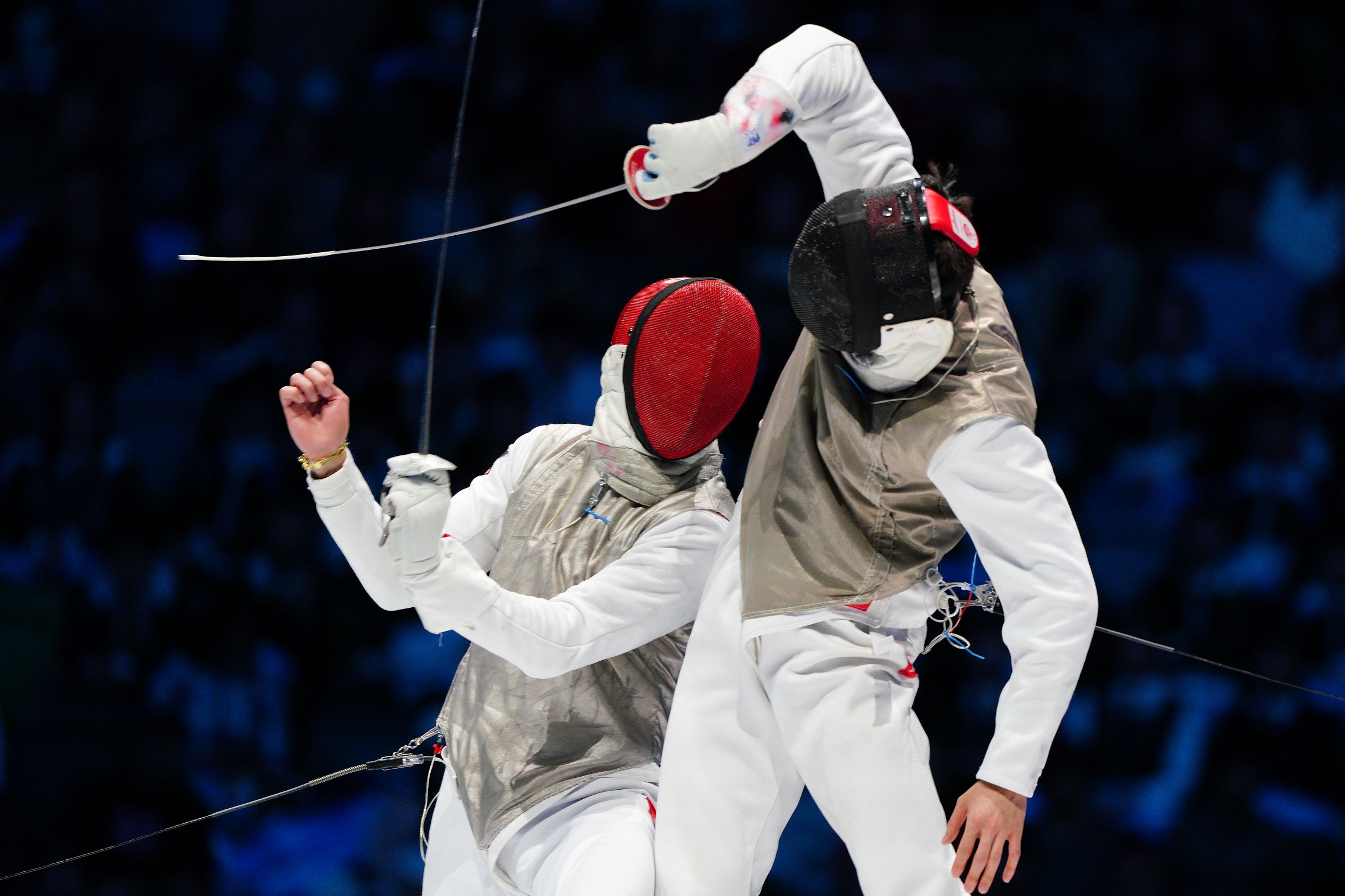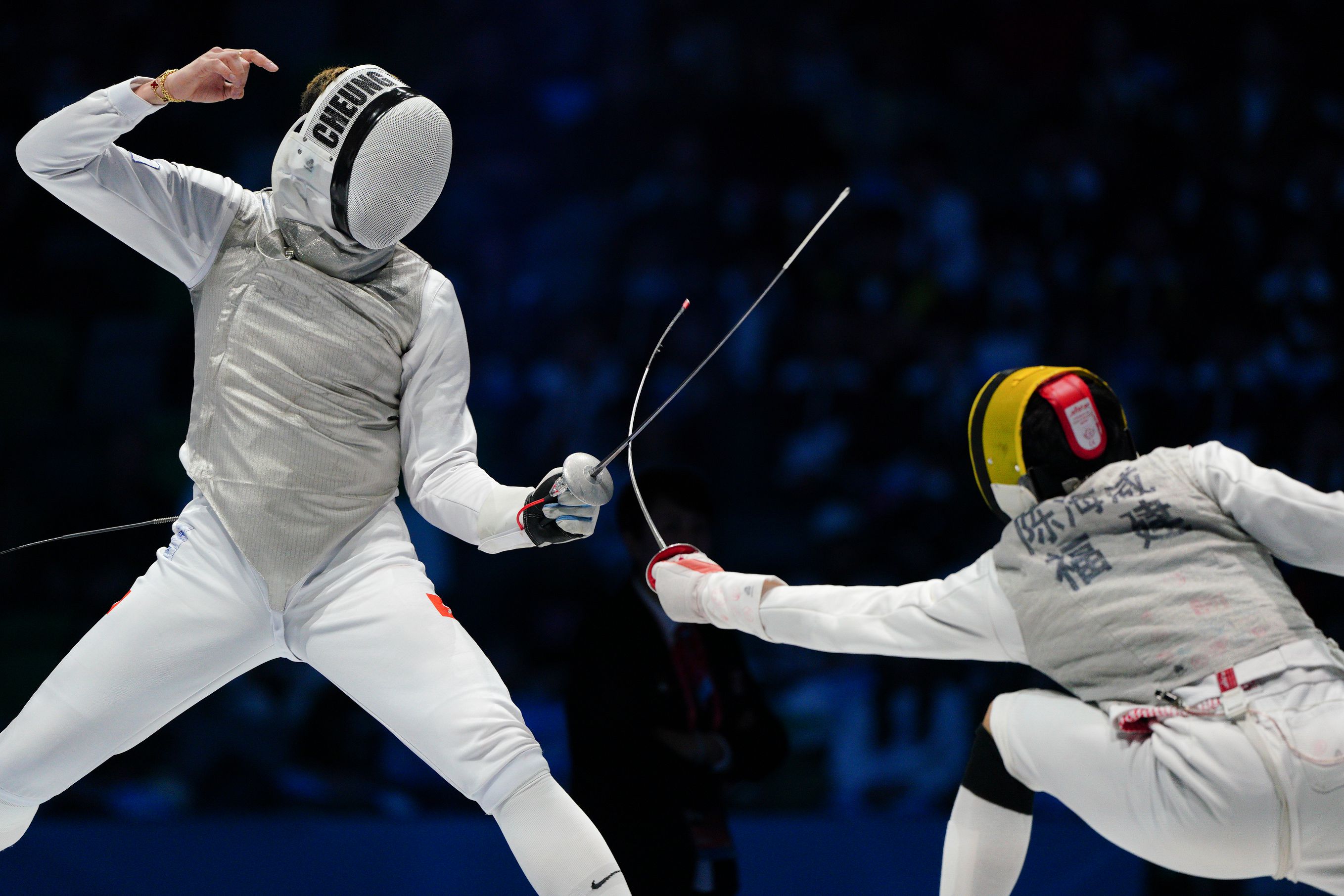 11月16日,張家朗在男子花劍銅牌賽中對戰曾昭然。開賽時,張家朗曾落後1劍,之後他連取7劍反超,最終以15:2大勝曾昭然奪得銅牌。