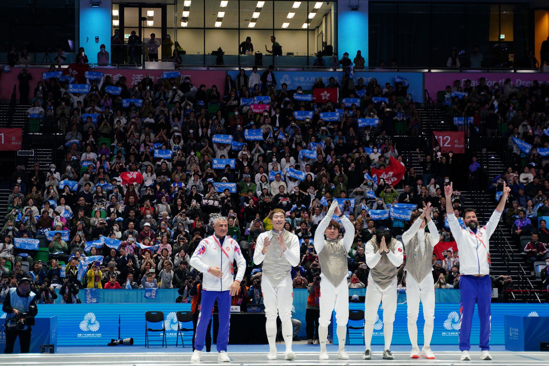 11月19日,由張家朗、蔡俊彥、梁千雨及吳諾弘組成的香港男子花劍隊,在金牌戰中以45∶34大勝福建隊,首奪全運會男花團體成年組金牌,創造歷史。
