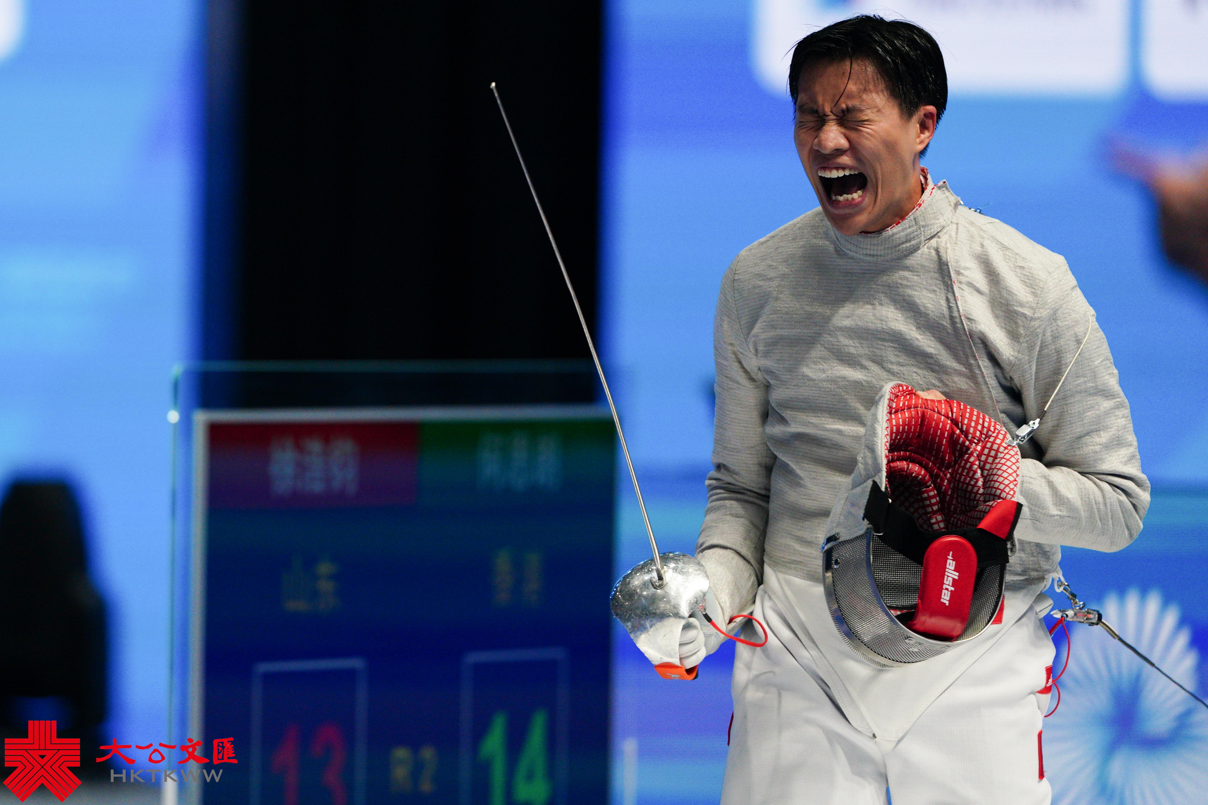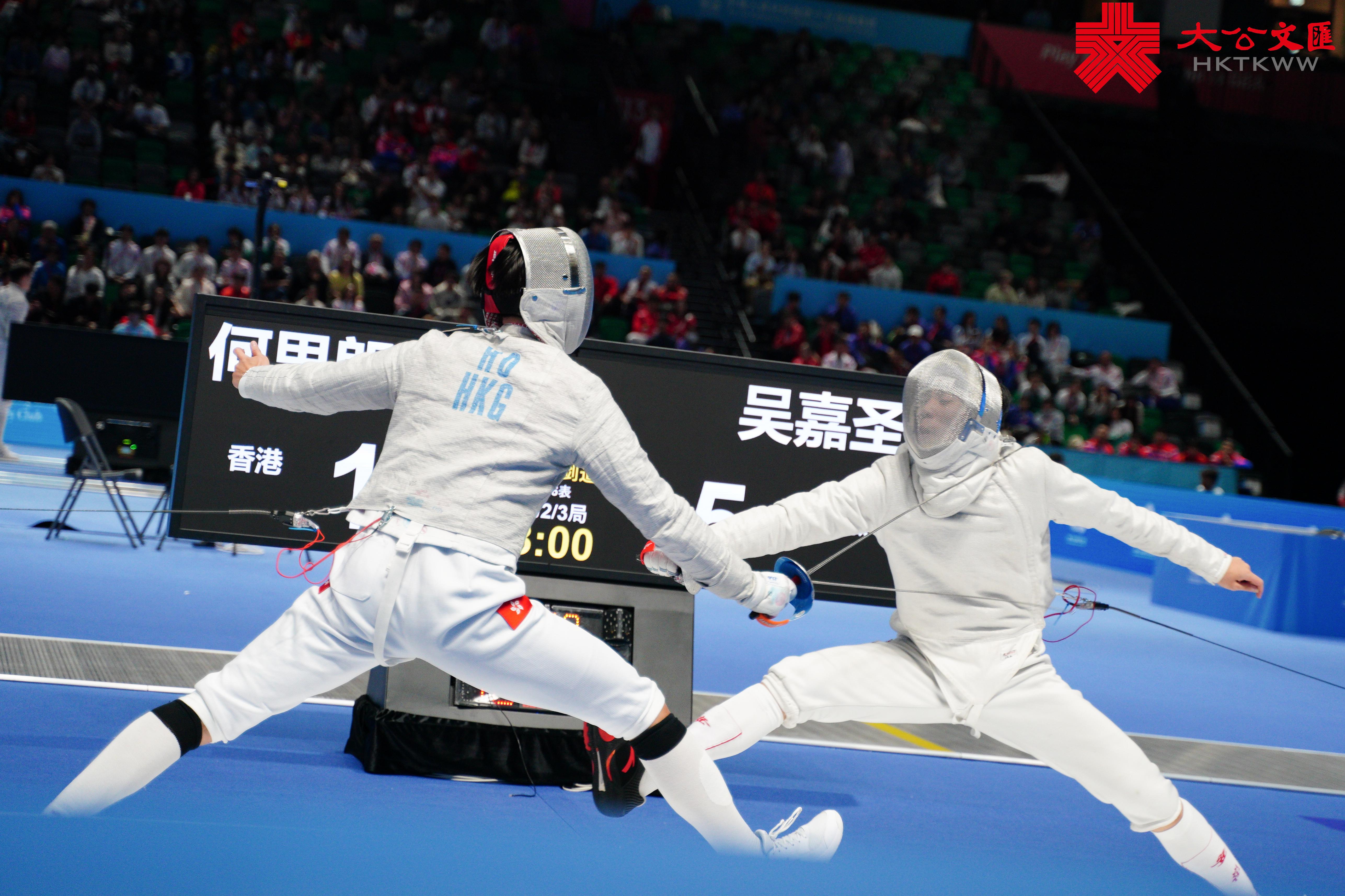 11月15日,何思朗在男子佩劍決賽中迎戰山東隊魏振浩,最終以7∶15不敵對手,奪得銀牌。這是香港男子佩劍隊在全運會史上奪得的第一塊獎牌,何思朗賽後坦言,這面獎牌印證我過去沒有放棄,有繼續努力,亦證明香港男佩是可以的。