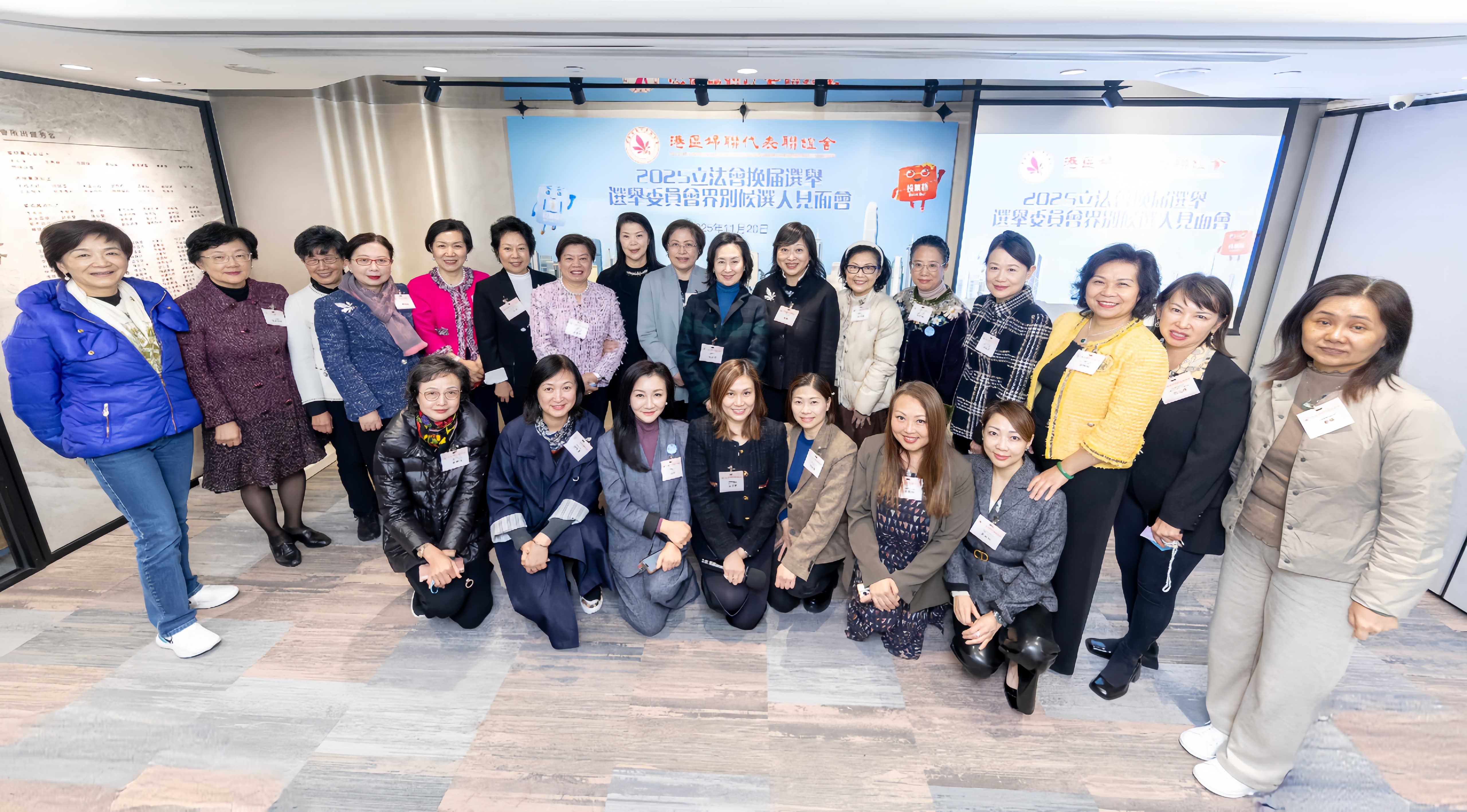 11月20日冷鋒到港,氣溫驟降至16度。在港區婦聯代表聯誼會會所洋溢著溫馨而熱烈的氣氛,舉行別開生面的2025立法會換屆選舉選委界別和全國人大代表、全國政協委員及有關全國性團體代表界候選人見面會。50 位選委會界別候選人,以及2位全國人大代表、全國政協委員及有關全國性團體代表功能界別候選人全數出席,分享他們的政綱理念、對良好家庭家教家風家風的認識和理解、對香港未來發展的美好願景,與歷任及現任全國婦聯常委、執委和特邀代表等選委面對面交流,共同探討香港的可持續高質量發展,共創香港美好未來共繪維港美麗風景線的願景。