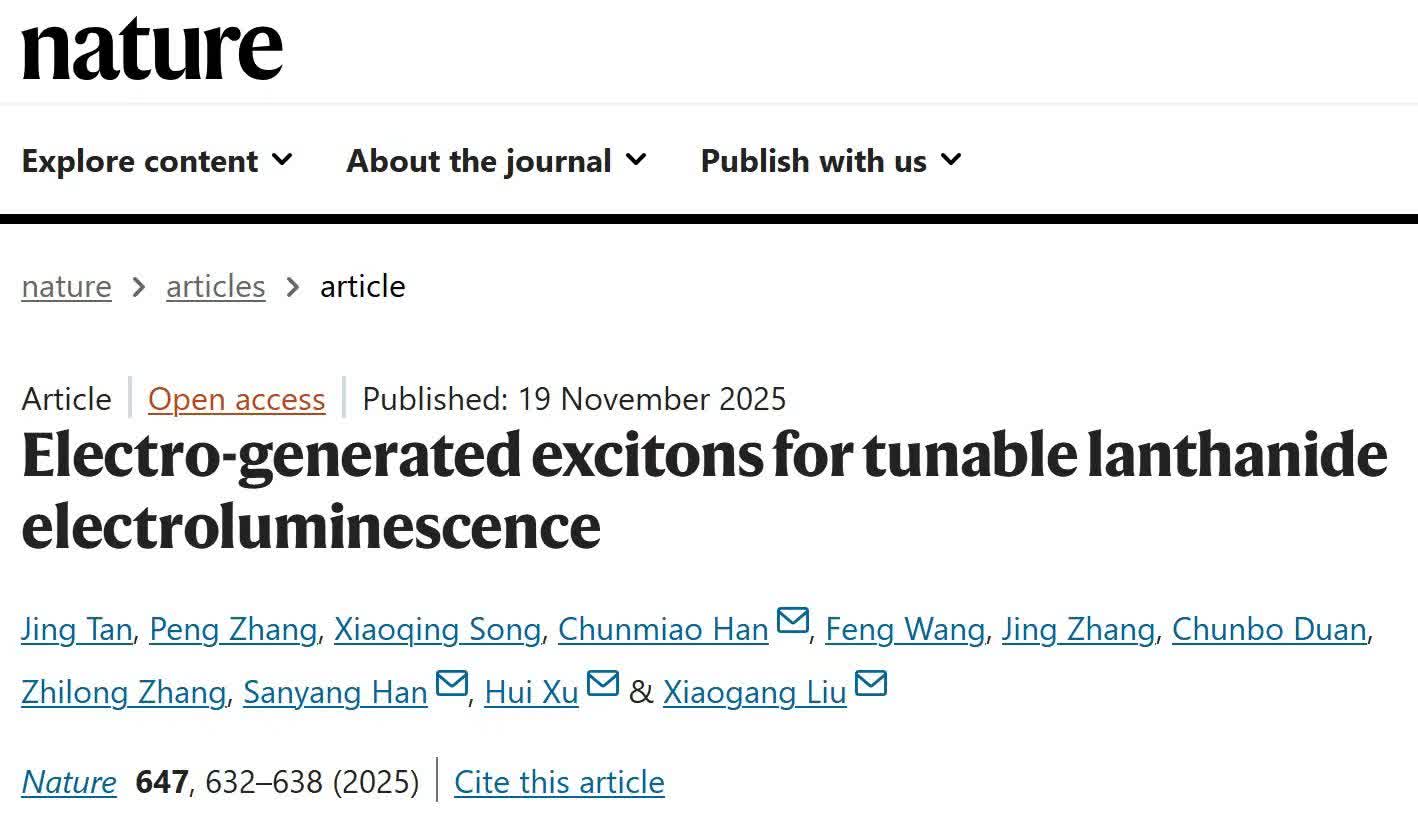 從2011年最初的設想,到2025年的成果綻放,這場科研攻堅跨越十四年,三支跨校團隊始終緊密協作,投入大量時間與精力,持續積累、不斷試錯,克服重重困難,最終實現了基於絕緣稀土納米晶的高效電致發光器件。團隊製備的綠色電致發光器件,其外量子效率達到5.9%,比未功能化的納米晶器件提升了76倍。 更令人驚嘆的是,無需改變器件結構,僅通過調整納米晶中摻雜的稀土離子,就能在同一器件上實現從綠色、暖白色到近紅外光的連續、精準調控。「這意味着,未來的顯示器件可能不需要為每一種顏色都重新設計複雜的結構,這為簡化工藝、降低成本打開了全新的想像空間。」許輝教授展望道。