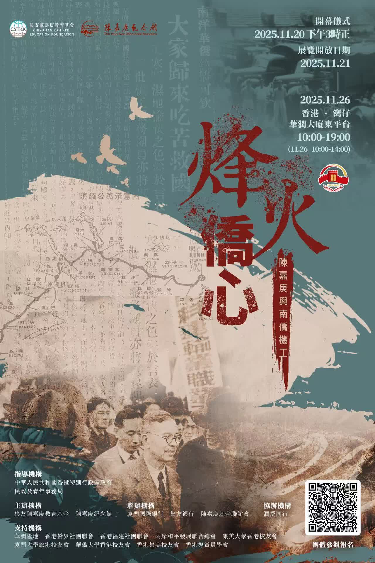 2025年是中國人民抗日戰爭暨世界反法西斯戰爭勝利80周年。為銘記歷史、緬懷先烈、珍愛和平、開創未來,11月20日,由集友陳嘉庚教育基金、廈門陳嘉庚紀念館聯合主辦,廈門國際銀行、集友銀行、陳嘉庚基金聯誼會聯辦,潤愛同行協辦,華潤隆地提供場地支持的「烽火僑心•陳嘉庚與南僑機工」圖片展於香港開展。