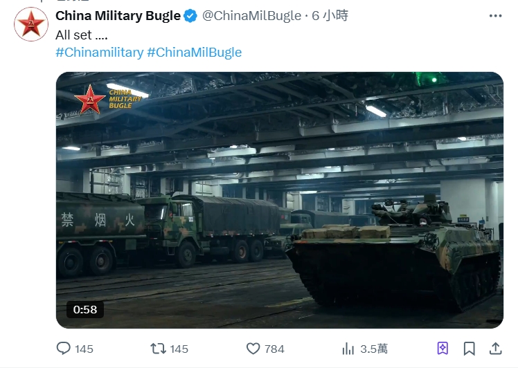 大公文匯全媒體報道,11月21日,中國軍號在海外社交平台發布視頻,並配文「All set(一切就緒)」。視頻最後,導彈密集升空。
