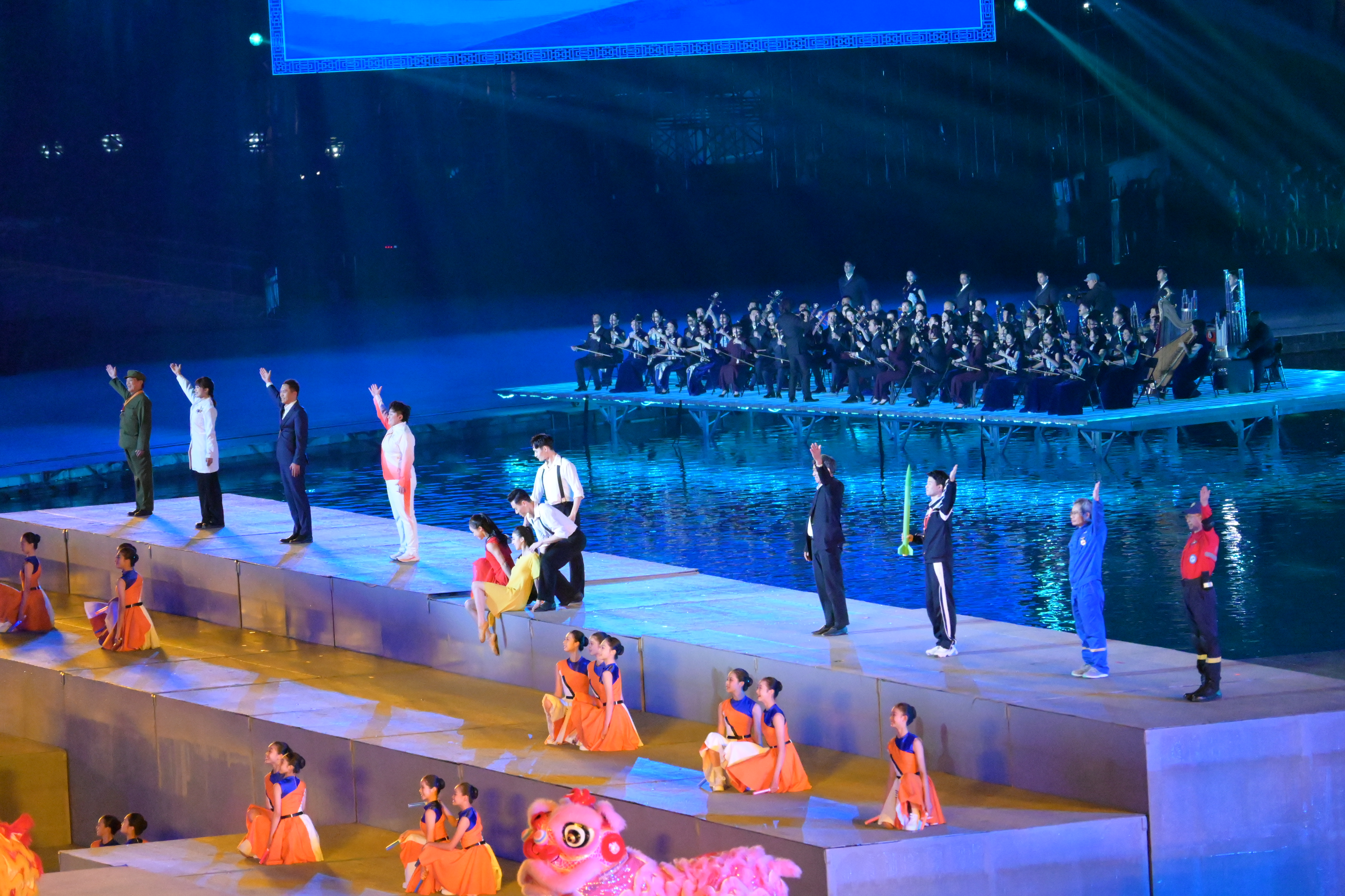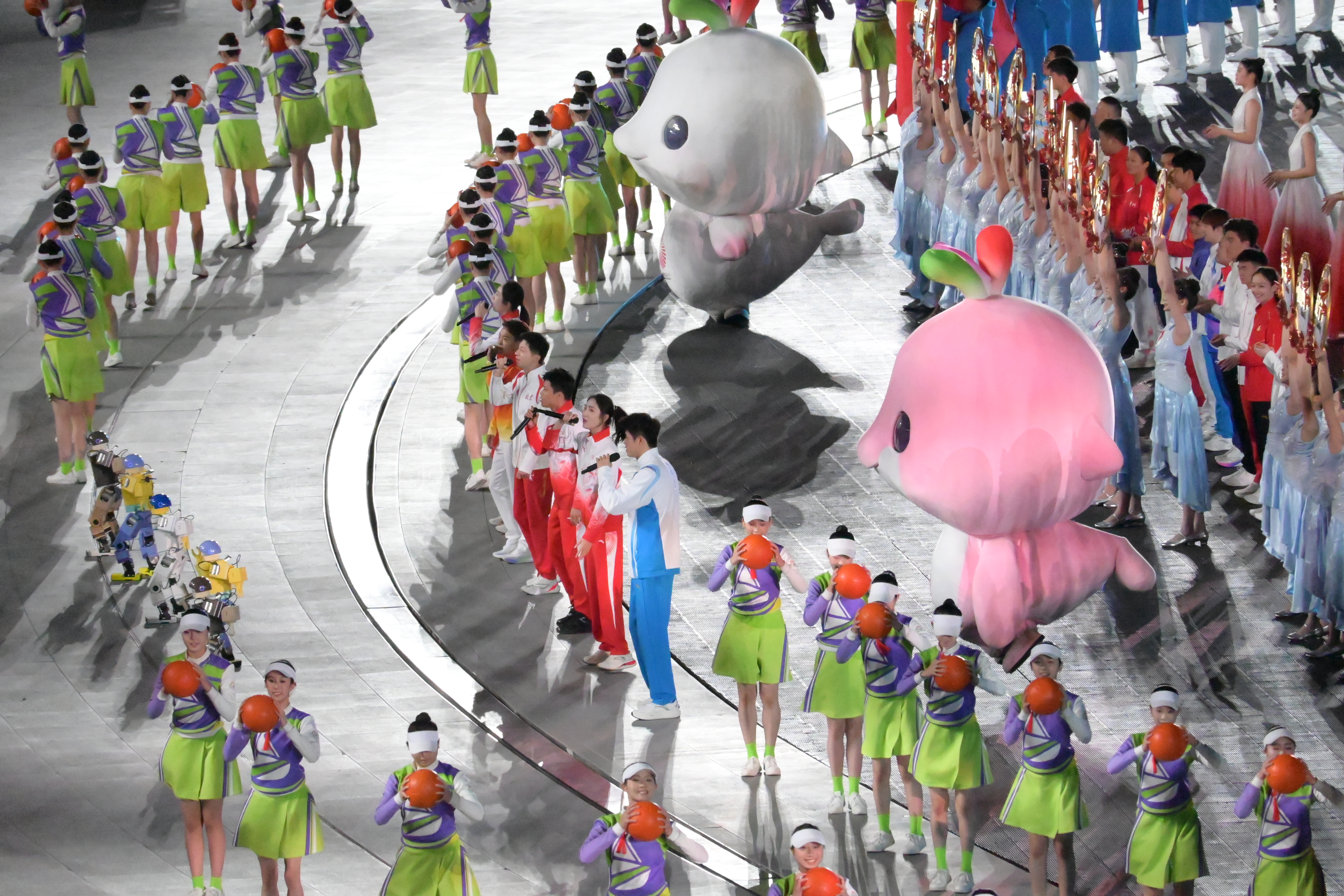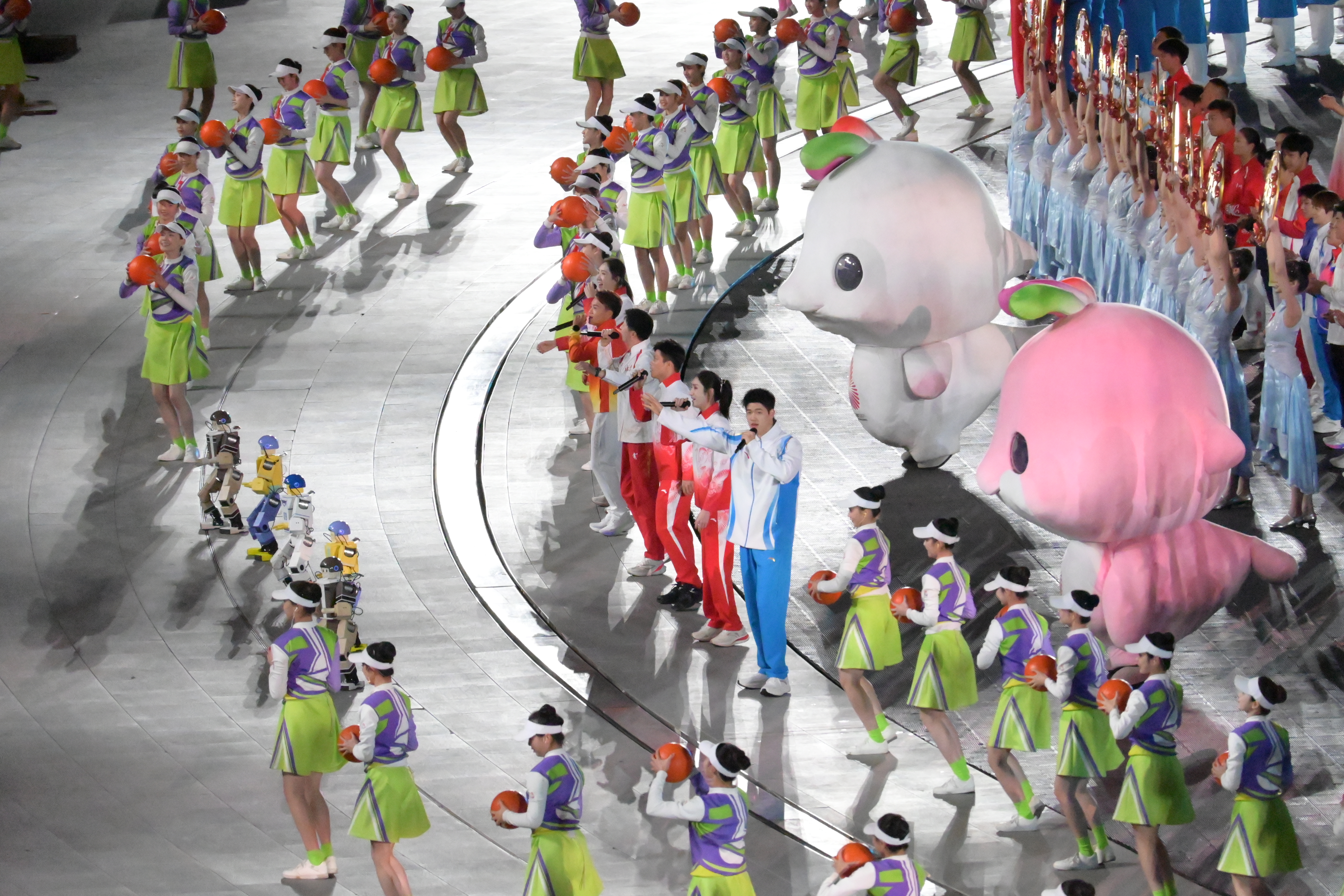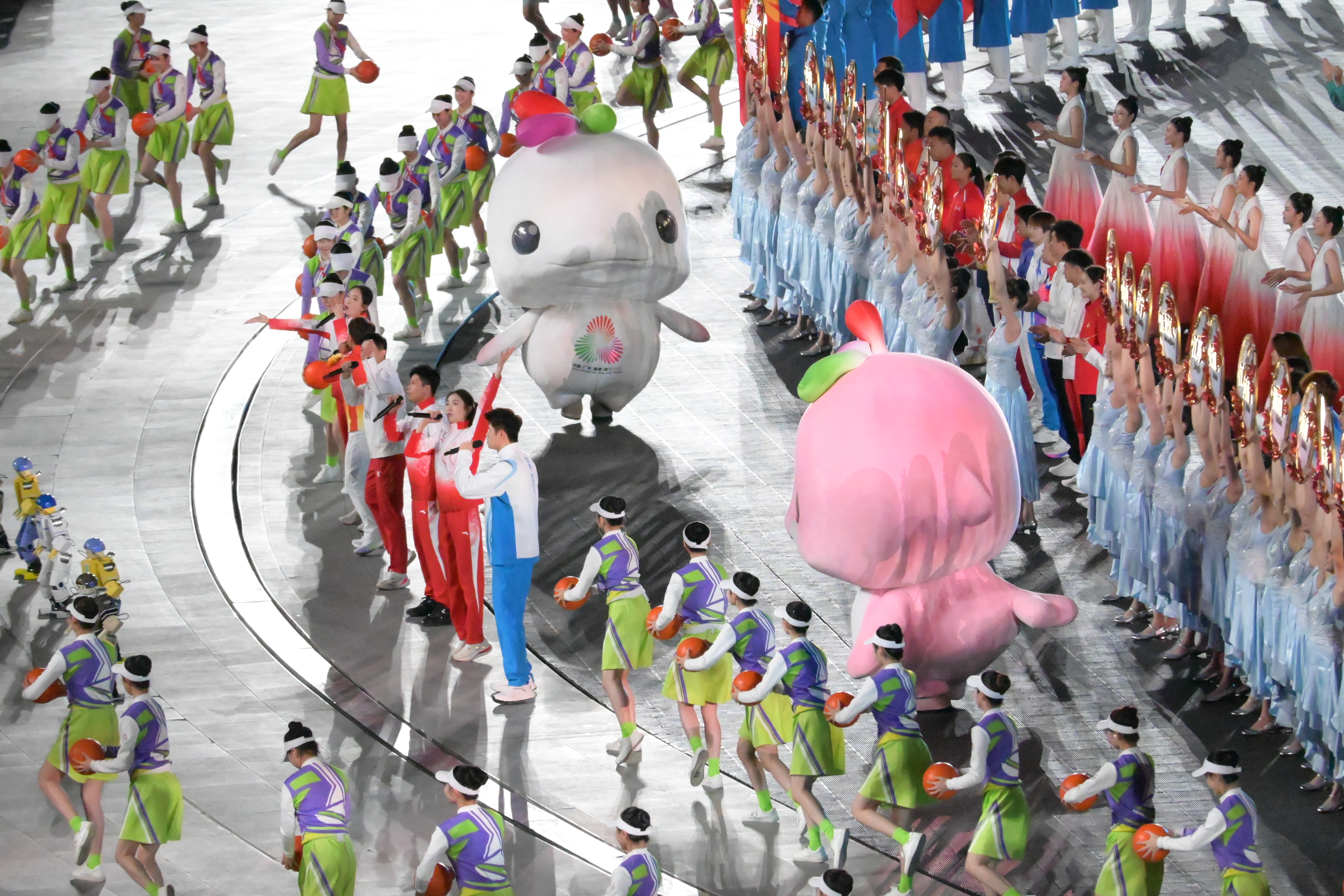全運會吉祥物「喜洋洋」和「樂融融」帶領全場觀眾一同展演第九套廣播體操,為閉幕式增添了活潑熱鬧的氣氛。