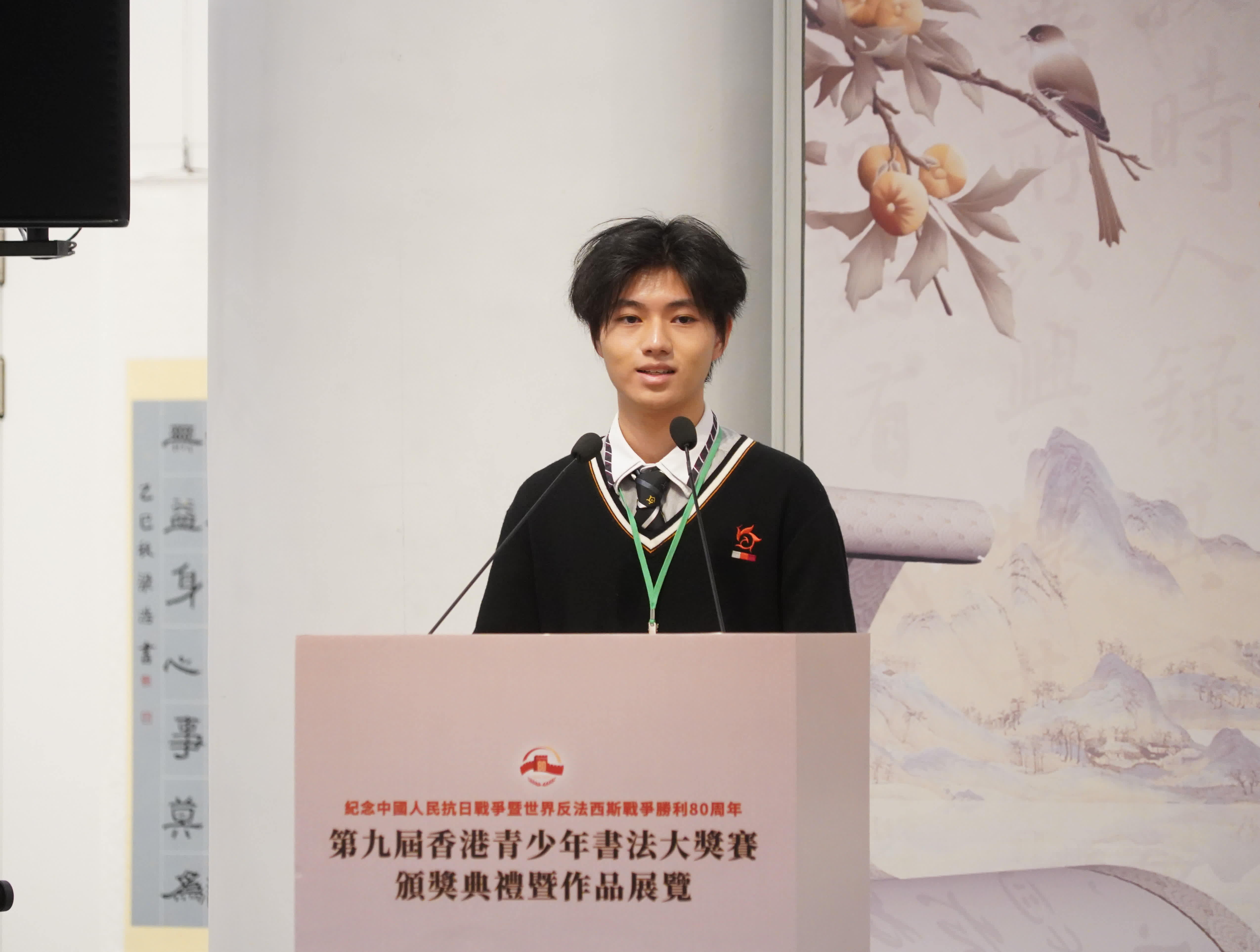 「文以載道,以筆鑄心。」他表示,書法之美,在於形,更在於神;在於筆墨,更在於風骨。寫好中國字,做好中國人。他形容同學們的作品以誠摯的赤子之心,抒寫了忠貞愛國、自強不息的民族氣節,這是香港青少年對80年前為祖國拋頭顱、灑熱血的先輩英靈最好的告慰。