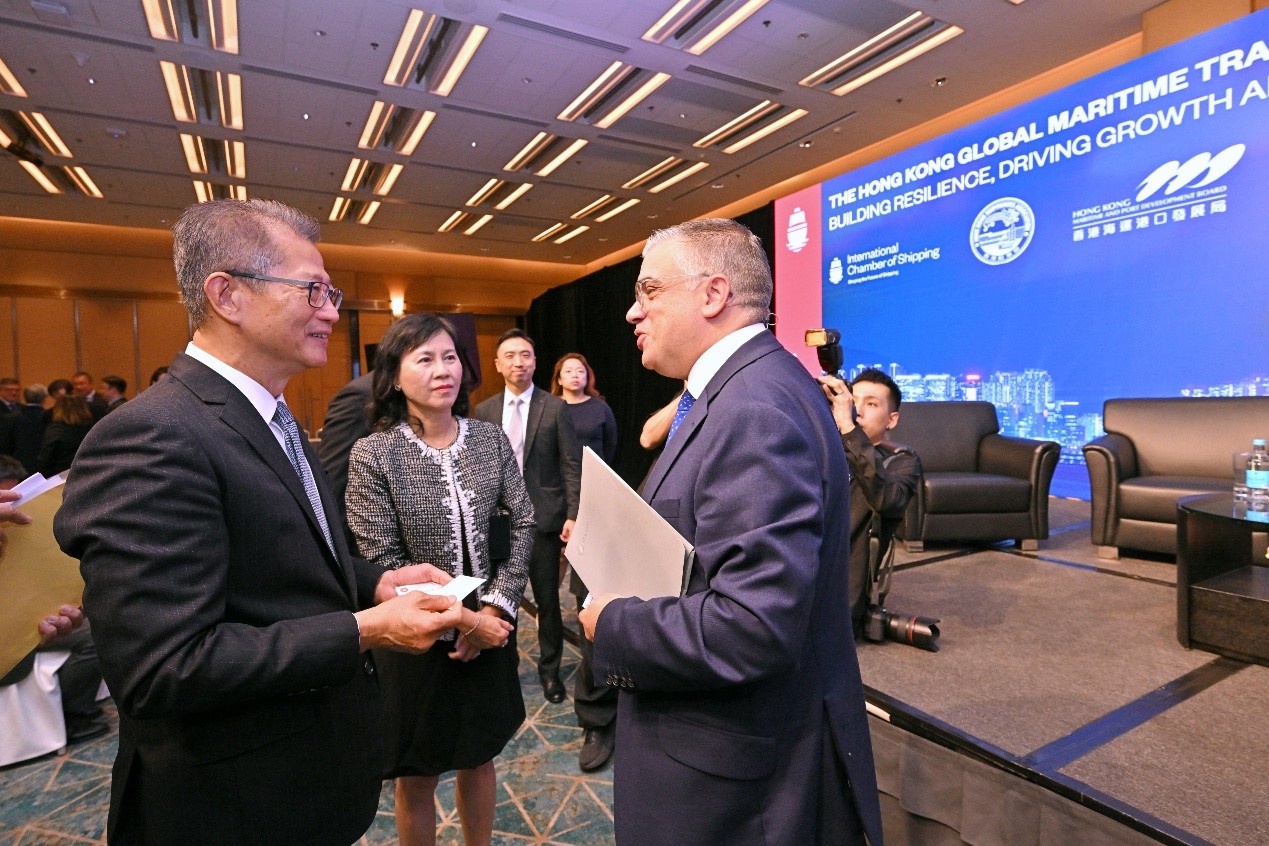 我亦在「香港海運周」期間,與國際航運保險聯盟主席Frédéric Denèfle和秘書長Lars Lange會面,亦很高興香港海運港口發展局與國際航運保險聯盟就訓練海事保險業人才簽署合作備忘錄,有助加強業界與國際接軌,進一步提升香港在高增值海事服務領域的國際地位。