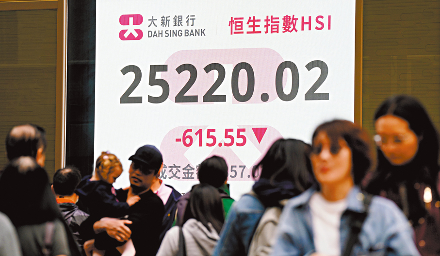 (香港文匯報記者 周紹基)美國多家科技巨頭圍繞AI推出總規模達數萬億美元的資本開支,被指是「非理性」繁榮,在投資者一片質疑聲中,全球AI相關股明顯回調。加上美國公布的9月非農就業人數增加11.9萬人超預期,令市場猜測美聯儲的減息步伐或會放緩,隔晚美股先升後急挫,拖累昨日港股大跌615點或2.4%,收報25,220點,科指更急瀉3.2%報5,395點。主板連創業板總成交2,858億元,「北水」淨流入銳減至約1億元,而周四「北水」淨流入為160億元。市場人士認為,美聯儲10月議息紀錄顯示,多名官員支持今年不再減息,這將會壓抑新興市場的股市表現。