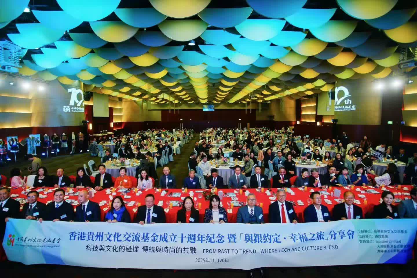 2025年11月20日,香港貴州文化交流基金在香港隆重舉行成立十周年紀念暨「與銀約定·幸福之旅」分享會。活動匯聚黔港兩地政界、教育界、文化界代表及師生逾400人,通過主題演講、非遺展示、慈善拍賣等多元形式,全面展現基金會十年來的豐碩成果,為未來合作注入新動力。