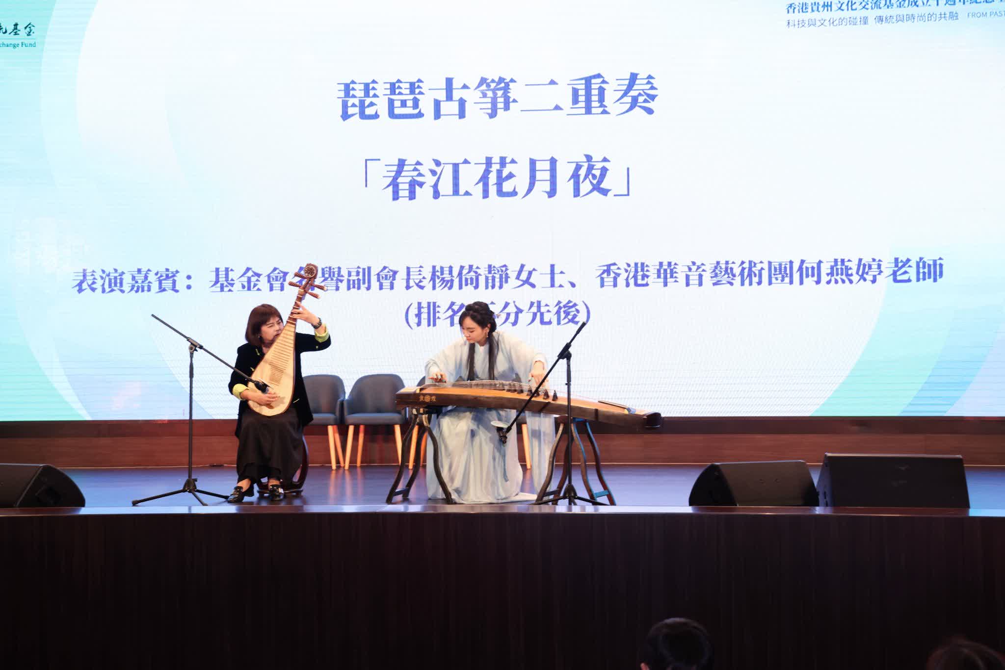 姊妹學校之一的貴陽市實驗小學學生帶來朗誦歌舞表演,基金會名譽副會長楊倚靜與香港華音藝術團合作演繹《春江花月夜》,增添濃郁文化氛圍。