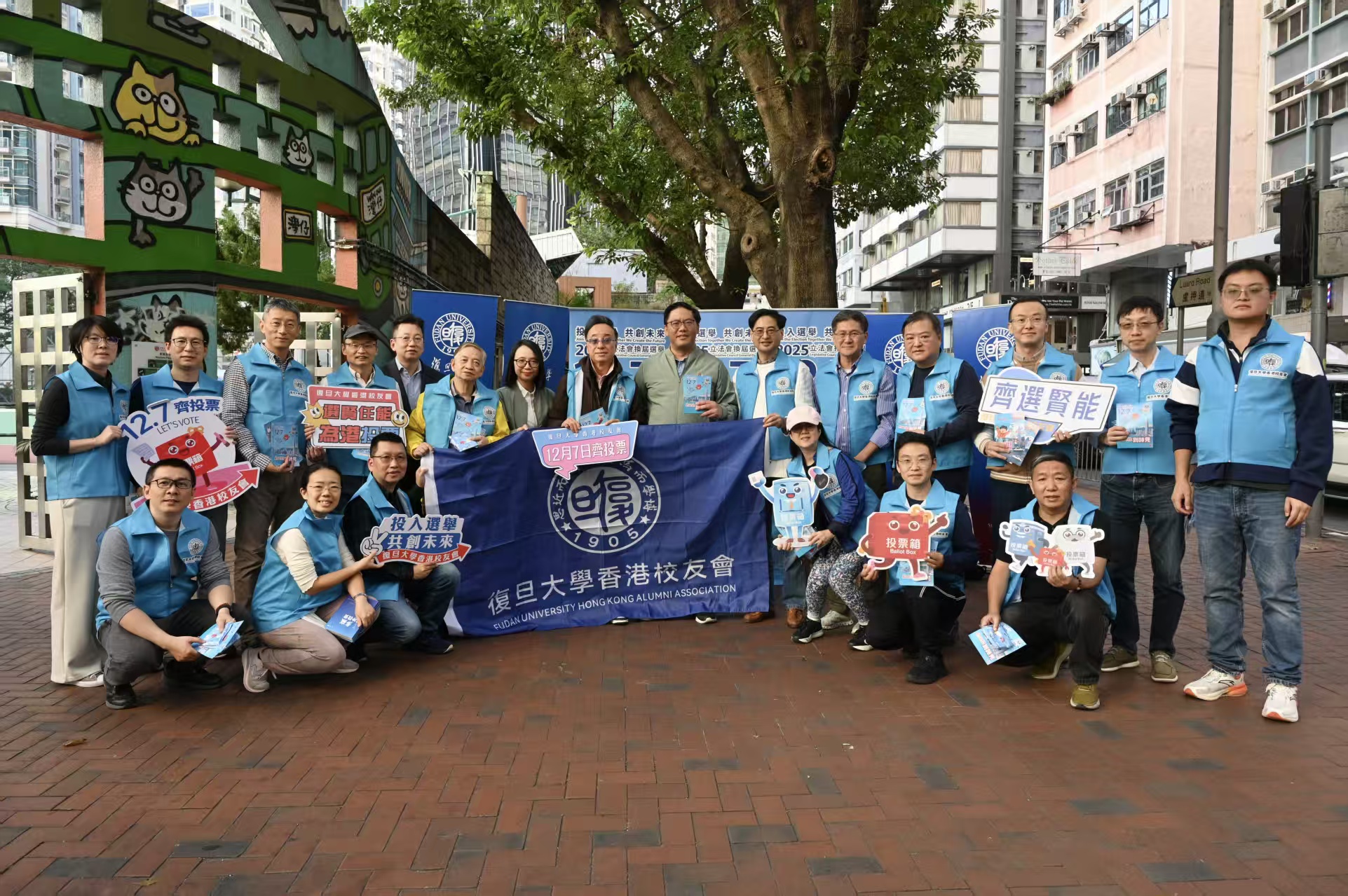 全國政協委員、復旦大學香港校友會會長屠海鳴表示,復旦大學香港校友會是一個愛國愛港的新興組織,校友骨幹們匯聚灣仔,自覺派發12月7日香港第八屆立法會選舉宣傳單張,呼籲選民為香港發展經濟、提升民生,踴躍投下神聖的一票。