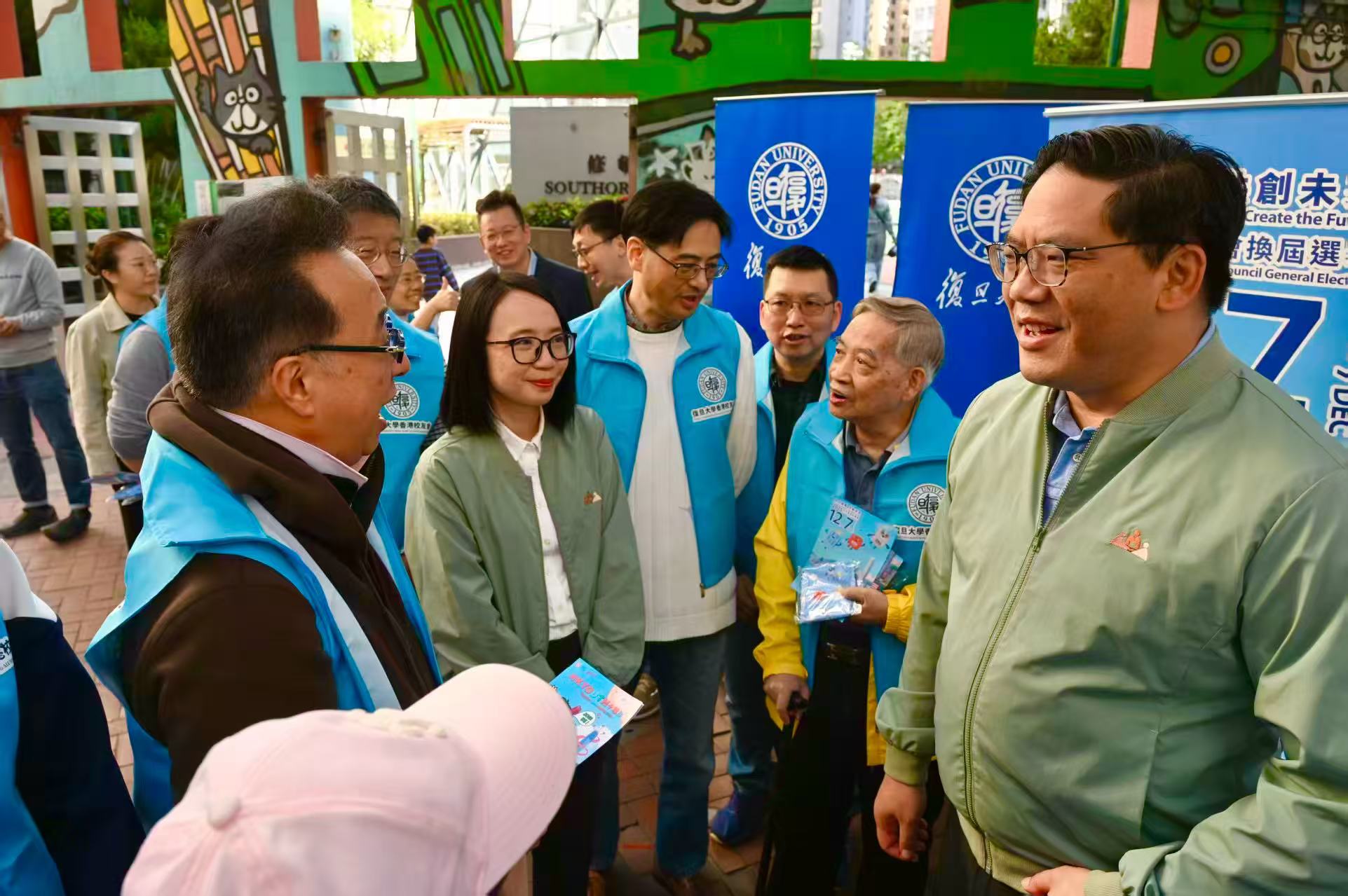 大公文匯全媒體報道,2025年立法會選舉將於12月7日舉行,22日下午,復旦大學香港校友會到灣仔地鐵站出口擺街站,宣傳12月7日投票選舉的重要意義。復旦大學香港校友會與民政及青年事務局副局長梁宏正一齊站街、派發宣傳單張、喊選舉口號,並與市民交流。