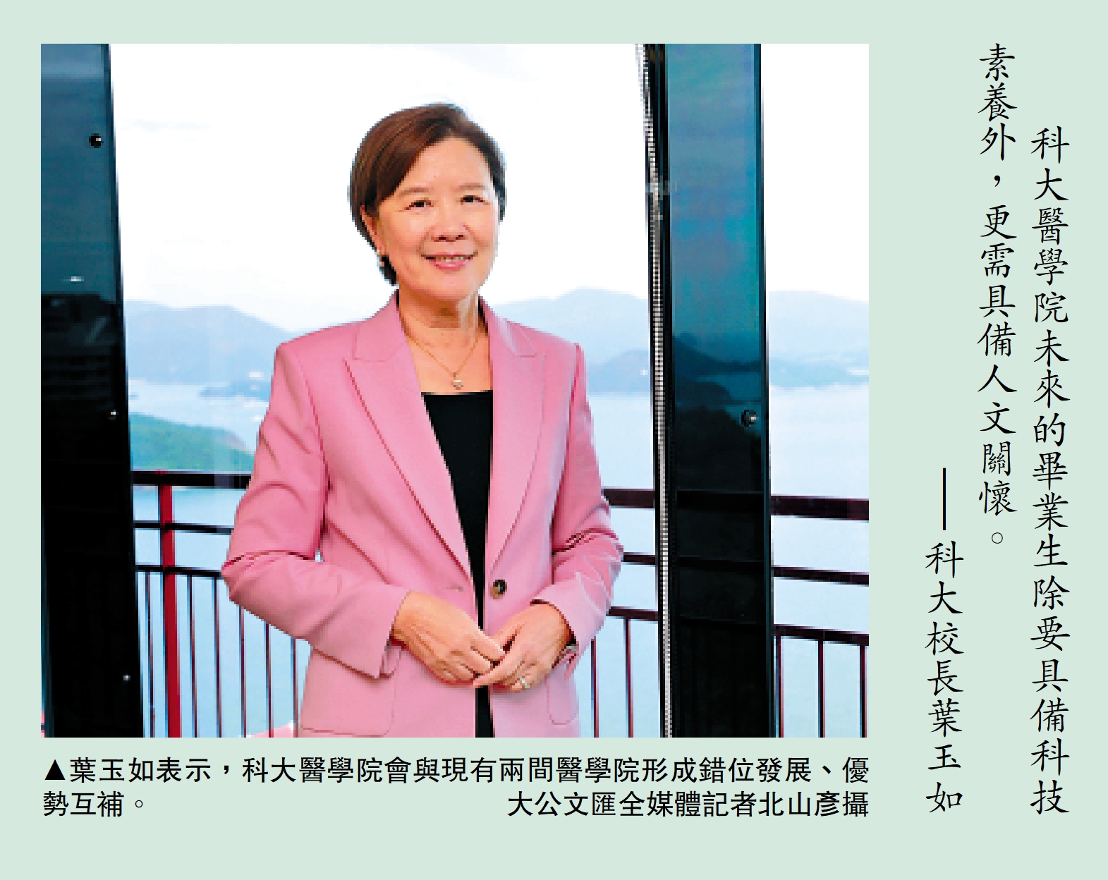 「我們的目標不僅是服務香港,更會放眼大灣區、全國乃至國際舞台。新醫學院將充分發揮科大的國際網絡和多元優勢,推動醫學與科技深度結合,為全球醫療發展貢獻力量。」葉玉如說。