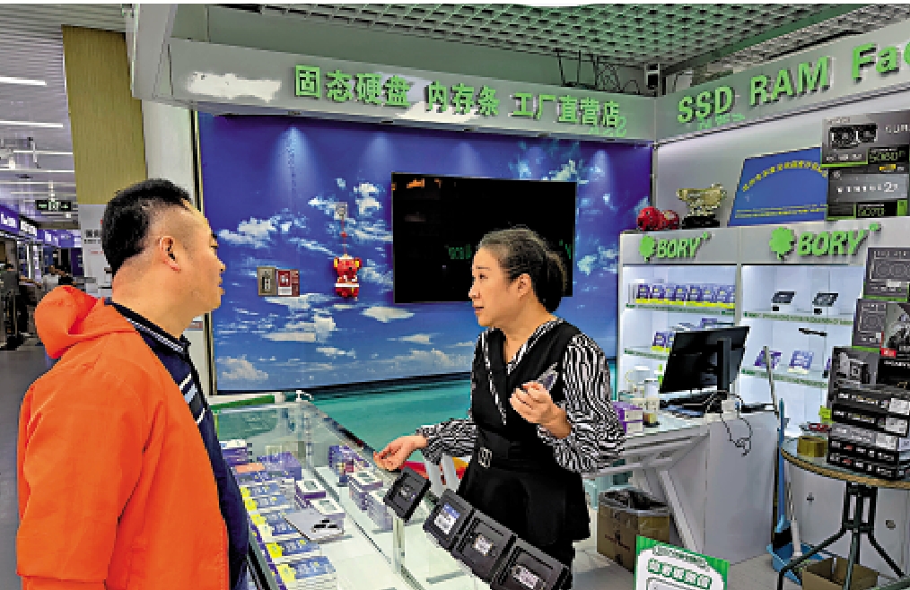 華強北賽格電子市場一名銷售記憶體和硬盤商家的店員表示,10月以來受原材料漲價、供應不足等影響,代理批發銷售的國產品牌BORY記憶體和硬盤紛紛上漲。「12G記憶體已無貨,8G記憶體還有貨,但貴了一倍多。1TB容量硬盤過去售200至300元(人民幣,下同),現漲逾倍至近600元,升幅讓人咋舌。」另一位長期經營記憶體的商家指着貨架上不同規格的記憶卡無奈地說:「記憶體漲得太瘋狂,差不多升了一倍。64G記憶卡價格大漲,消費者的購買成本明顯增加。」