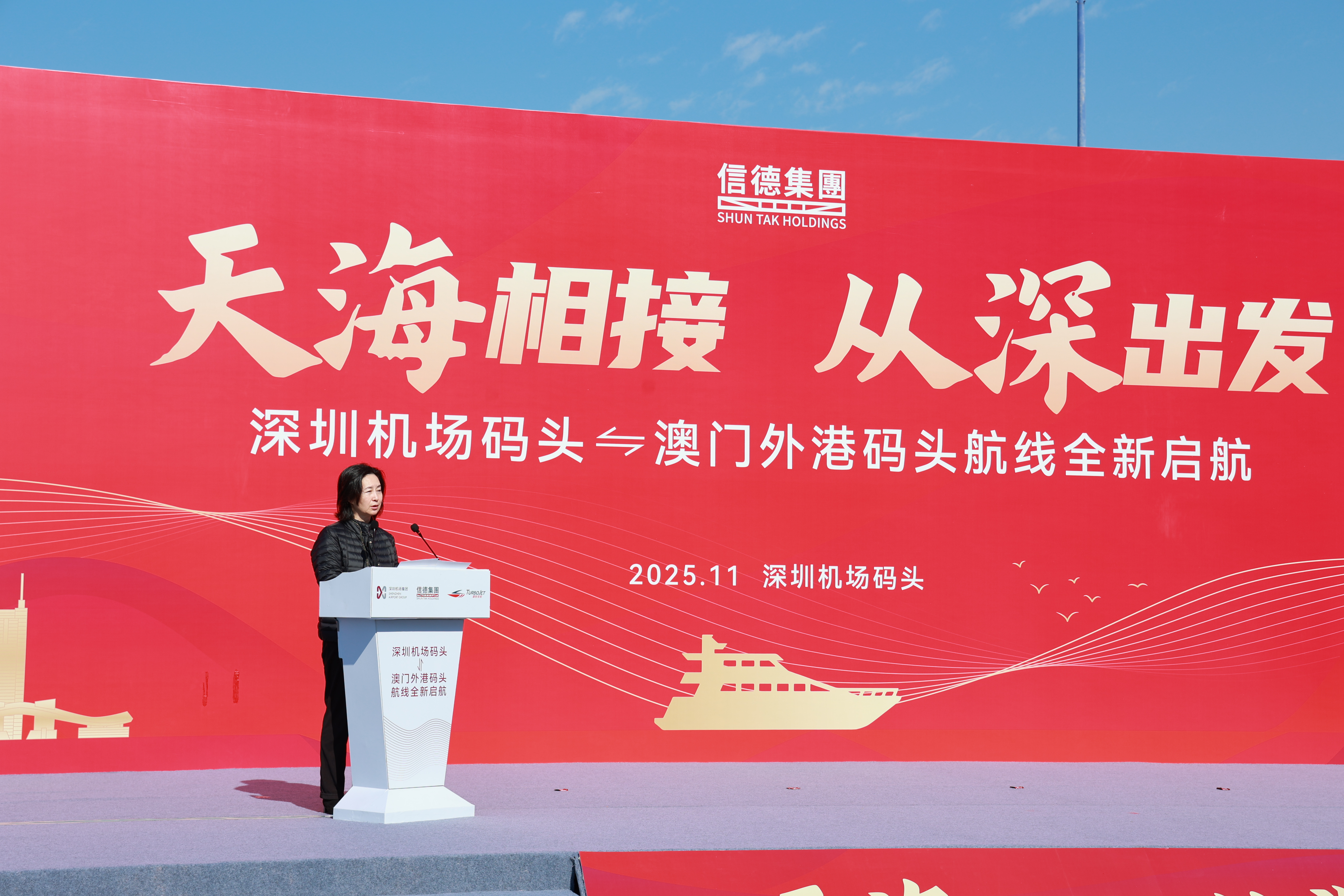 (大公文匯網記者郭若溪)11月23日,深圳機場集團聯合信德集團共同舉辦「深圳機場碼頭至澳門外港碼頭航線啟航活動」,標誌着雙方在海上跨境航線業務上的深度合作正式開啟,將共同致力於強化深港澳互聯互通,促進粵港澳大灣區加速融合發展。全國工商聯副主席、信德集團董事長兼噴射飛航總裁何超瓊女士出席活動。