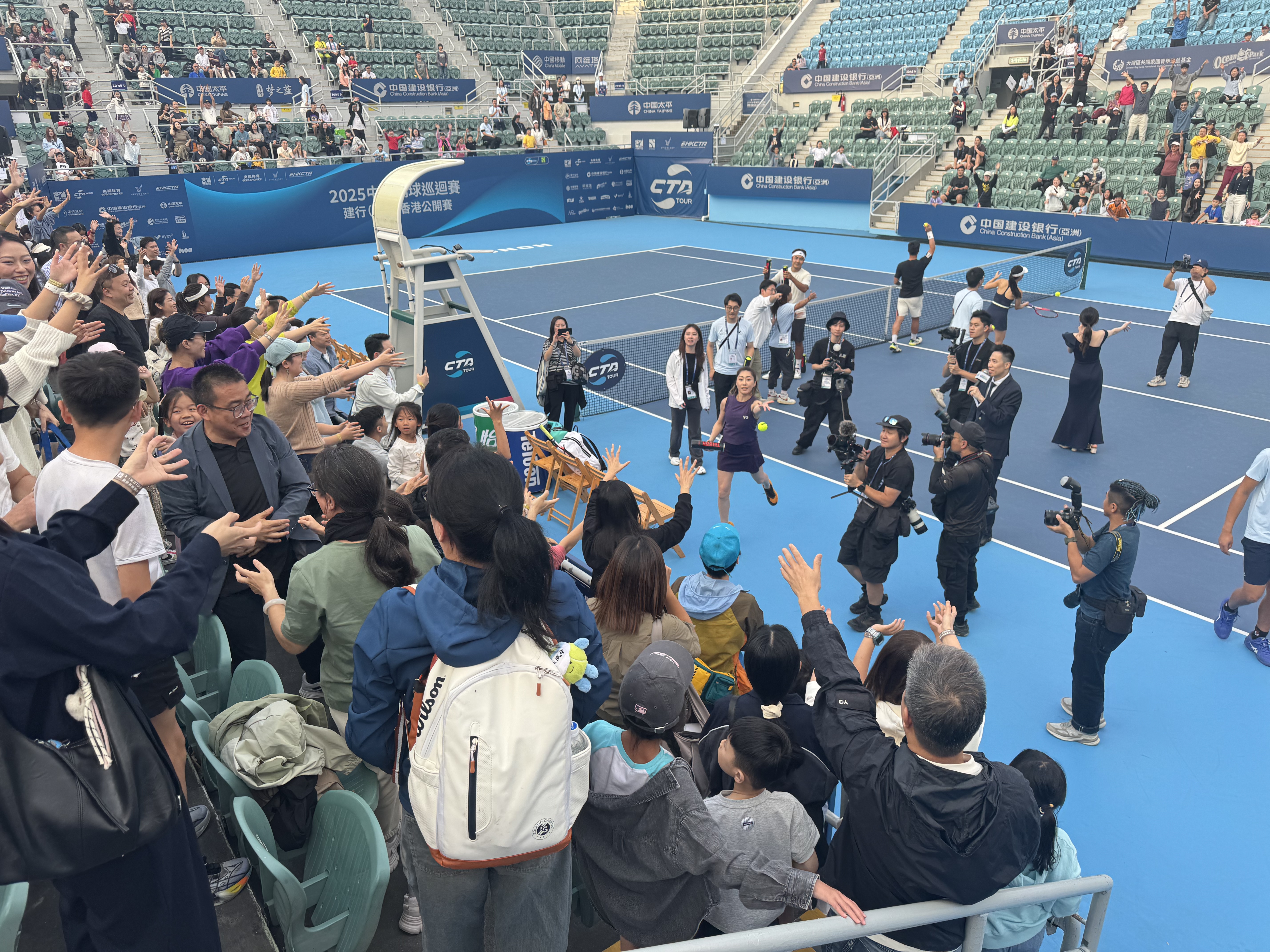 現場特別設置了以網球拍為造型的剪綵儀式,由多位嘉賓一同參與剪綵,正式啟動2025中國網球巡迴賽建行(亞洲)香港公開賽。隨後,為慶祝賽事啟動,大會舉辦名人賽,邀請香港知名藝人胡定欣、前中巡賽冠軍選手特日格樂,對陣前女子網球運動員陳詠悠及新生代網球新星肖霖昂。
