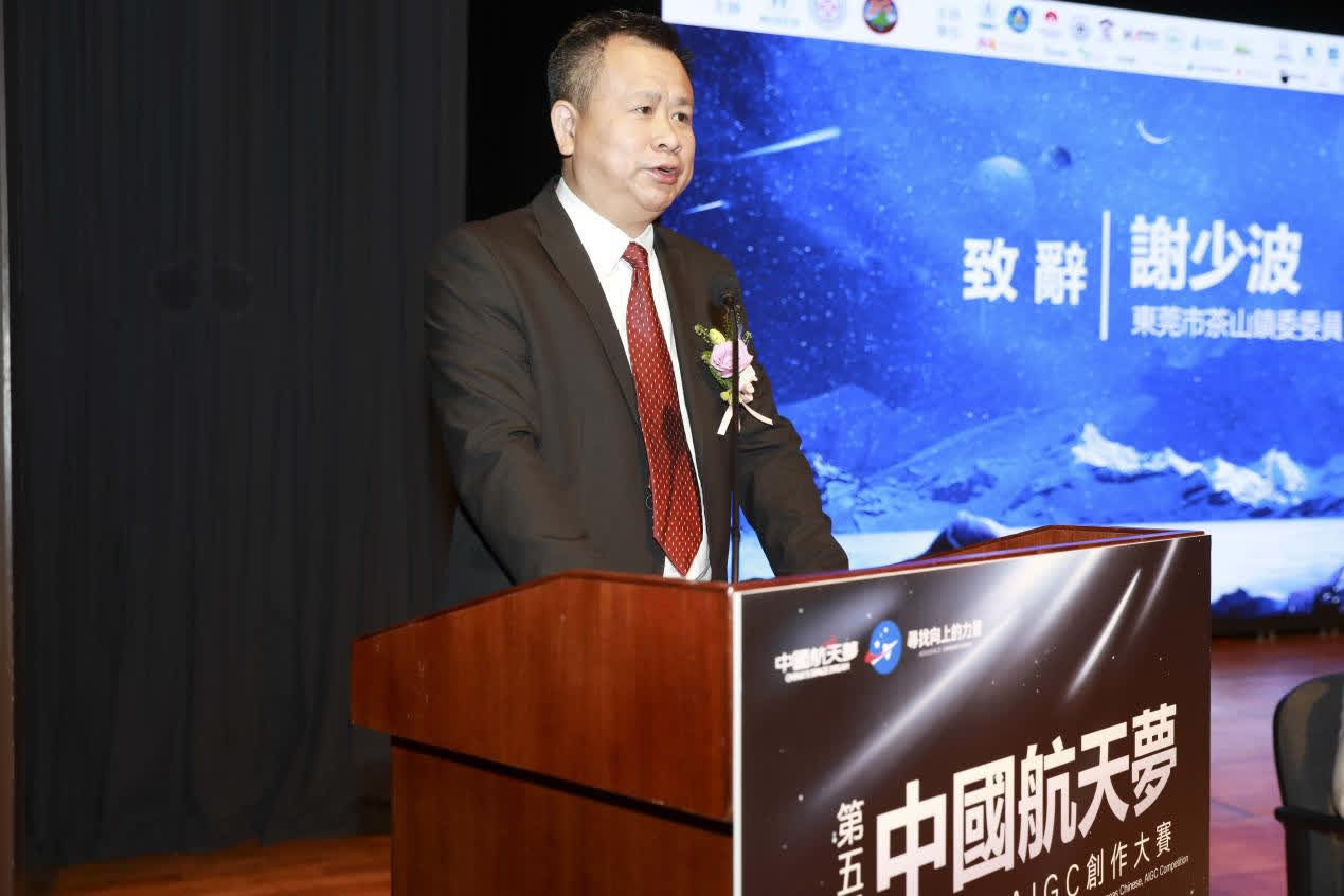 謝少波在致辭中表示,青少年是祖國的未來和民族的希望,莞港澳台僑青年血脈相連、文化同源。希望大家能以AIGC創作大賽為橋、以航天為媒,在交流中增進了解,在合作中加深情誼,成為粵港澳大灣區融合發展的見證者、參與者和推動者,讓青春之花在灣區大地上絢爛綻放。