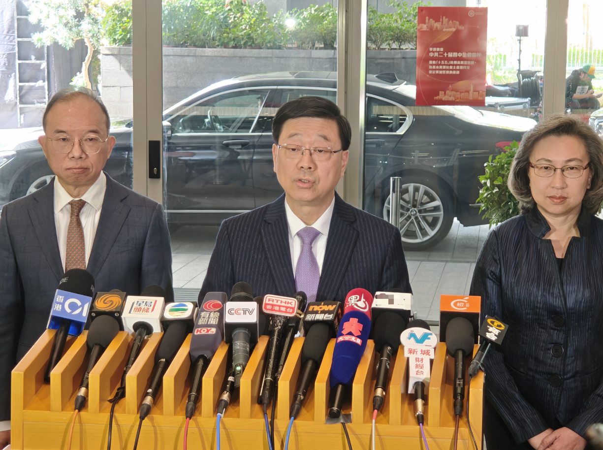 李家超表示,中共二十屆四中全會上月在北京勝利舉行,並且審議通過《中共中央關於制定國民經濟和社會發展第十五個五年規劃的建議》。他指,「十五五」規劃建議,關乎國家的發展宏圖,與香港息息相關,明確說明香港特區未來發展的定位與方向。例如,建議中提到要支持港澳更好融入和服務國家發展大局,鞏固提升香港國際金融、航運、貿易中心地位,支持香港建設國際創新科技中心,以及支持港澳打造國際高端人才集聚高地等,讓特區政府對香港的發展定位有了更清晰的理解,對香港的發展至關重要。