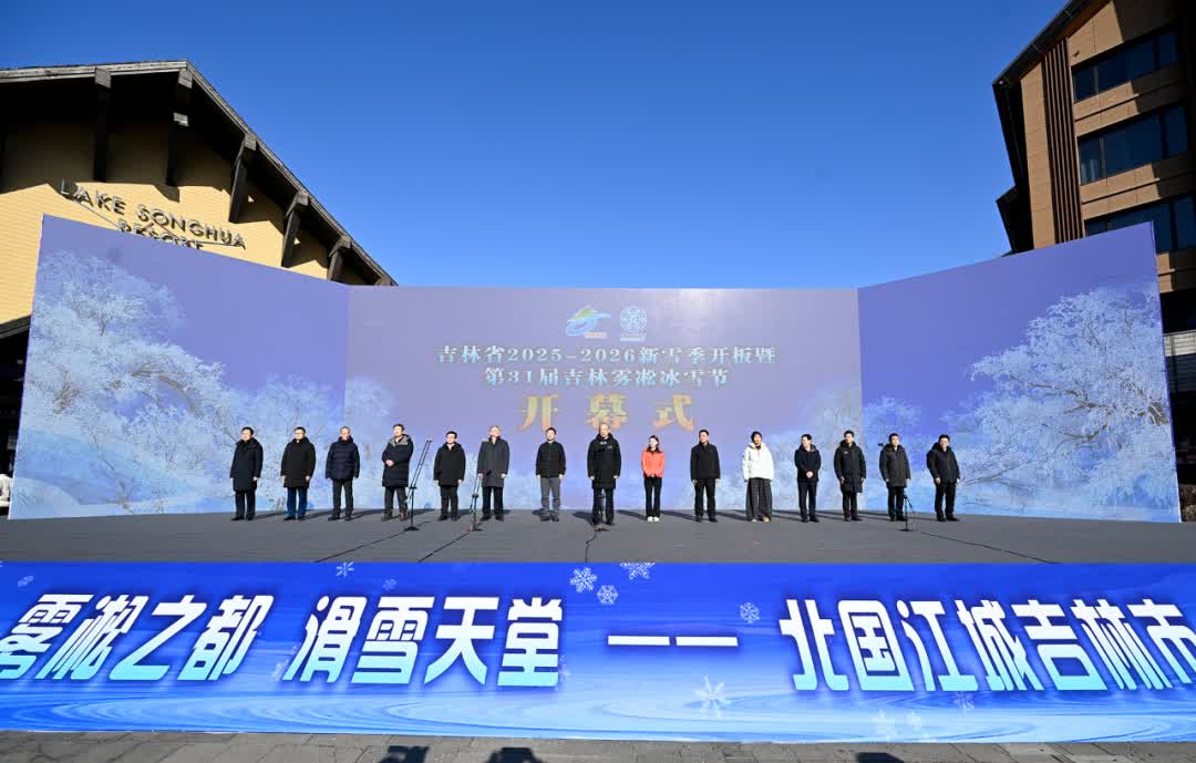 吉林省2025-2026新雪季開板暨第31屆吉林霧凇冰雪節開幕式在中旅松花湖度假區舉行。