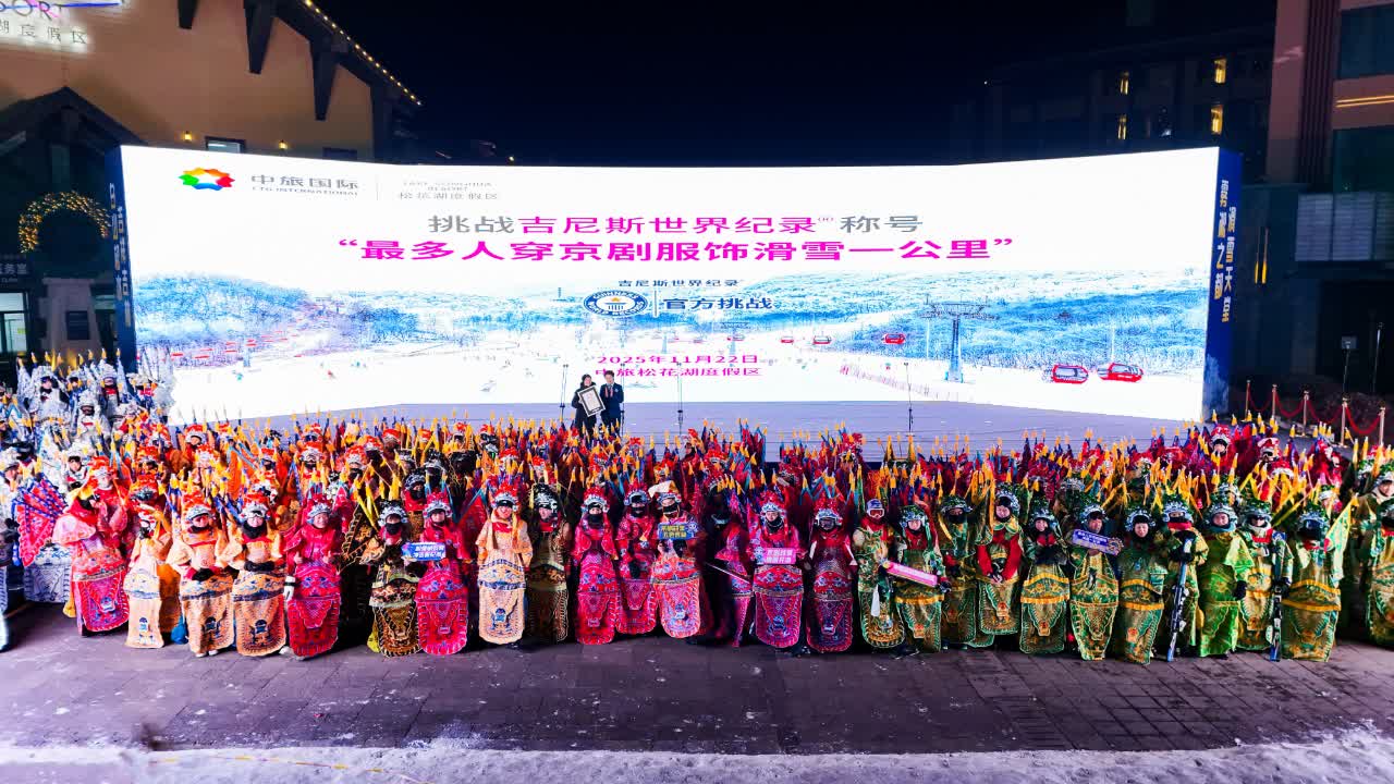 現場同步開展新雪季首滑表演、中旅國際所屬深圳世界之窗舞蹈快閃、外交官進吉林、非遺文創展、特色商貿市集、冰雪裝備展示、陽台音樂會等活動,多國駐華使節現場助力世界級冰雪旅遊目的地建設,集中展現冰雪與文化、科技、賽事的融合魅力。活動期間,中旅松花湖度假區成功挑戰「最多人穿京劇服飾滑雪一公里」吉尼斯世界紀錄,為新雪季增添重磅亮點。