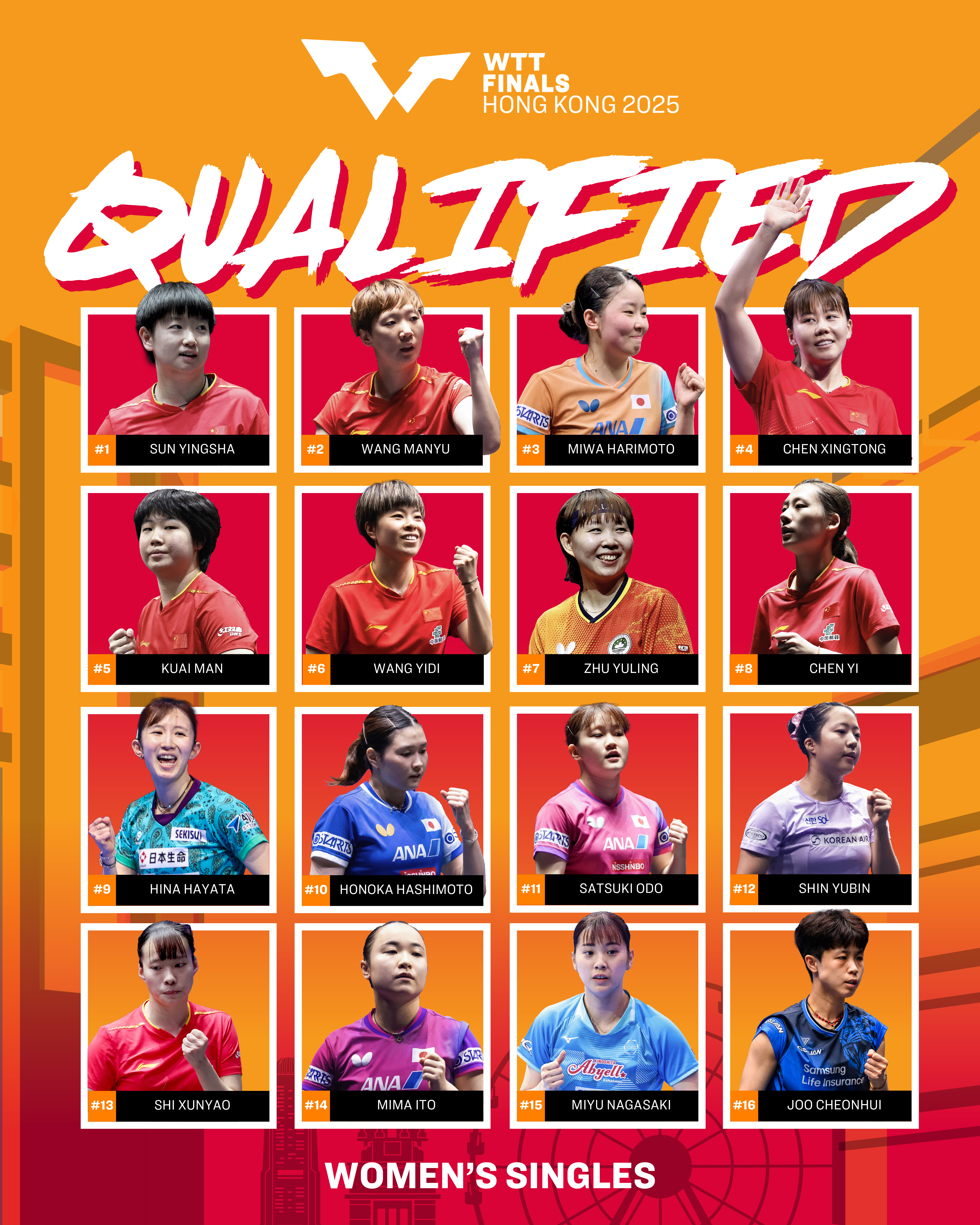 大公文匯全媒體報道,隨着WTT馬斯喀特明星挑戰賽圓滿落幕,於12月10日至14日在香港紅磡體育館舉行的WTT香港總決賽的男、女子單打與混合雙打的參賽陣容正式敲定,目前只剩下一組混合雙打外卡名額尚未揭曉,而這個最後的外卡名額將在香港站開賽前公布。
