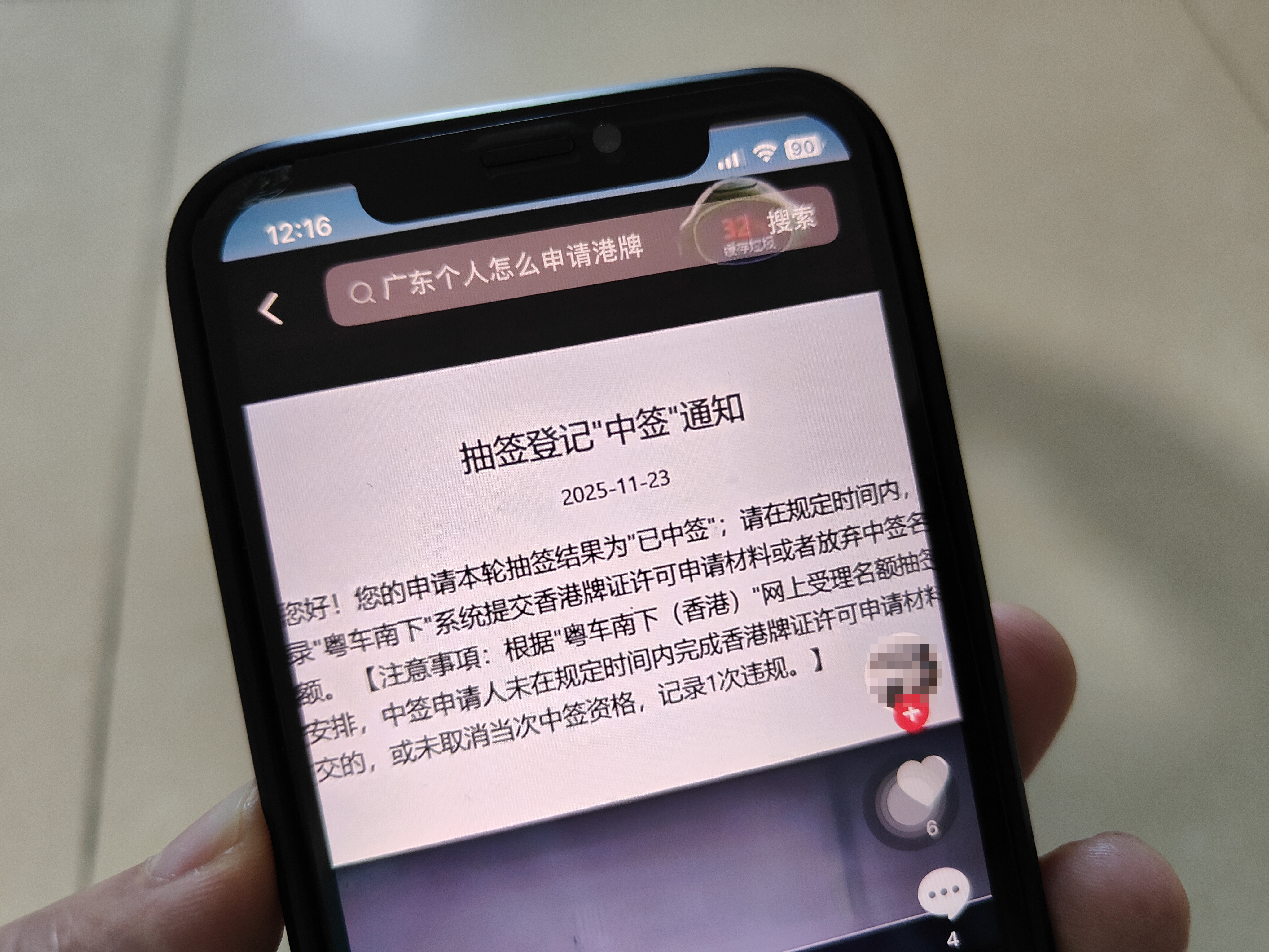(大公文匯網 記者 方俊明)備受關注的「粵車南下」香港市區通行首批抽籤結果正式公布。記者24日從廣東省公安廳主辦的「粵車南下」信息管理服務系統獲悉,首批共有2388人參與抽籤,1700人中籤,中籤率超過71%。有中籤車主坦言非常榮幸見證這一時刻,今後可以開車更方便地「探索」和遊玩香港更多地方。