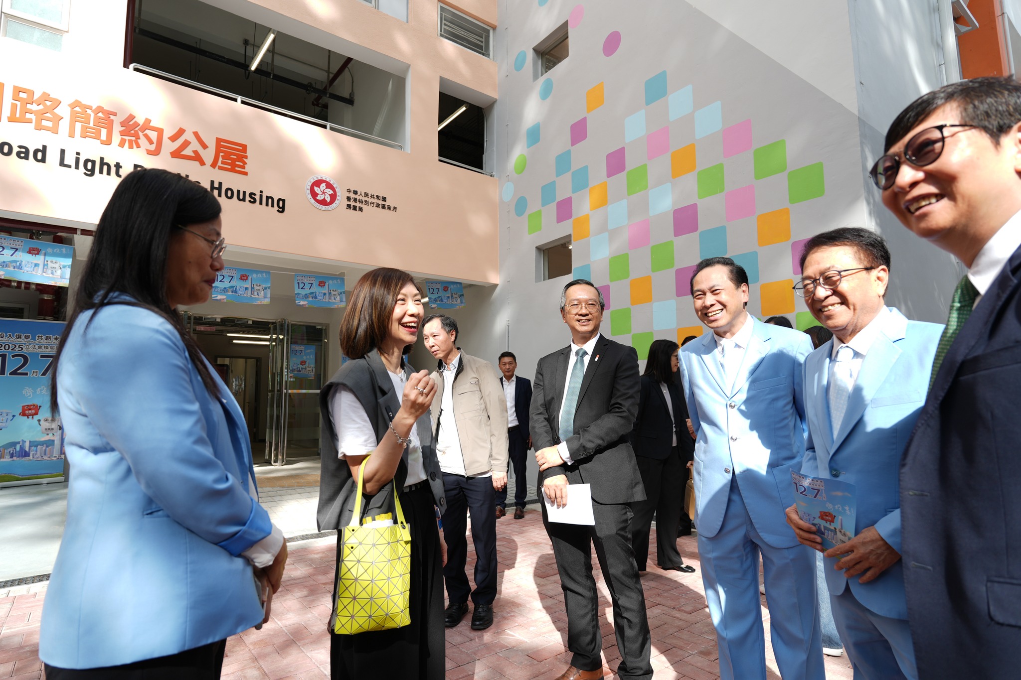她強調,簡約公屋不僅提供安居之所,更賦予居民對未來的期盼。在觀塘順安項目樓梯轉角處,一幅「我們畢業了」壁畫寓意居民將從簡約公屋起步,邁向更美好人生。