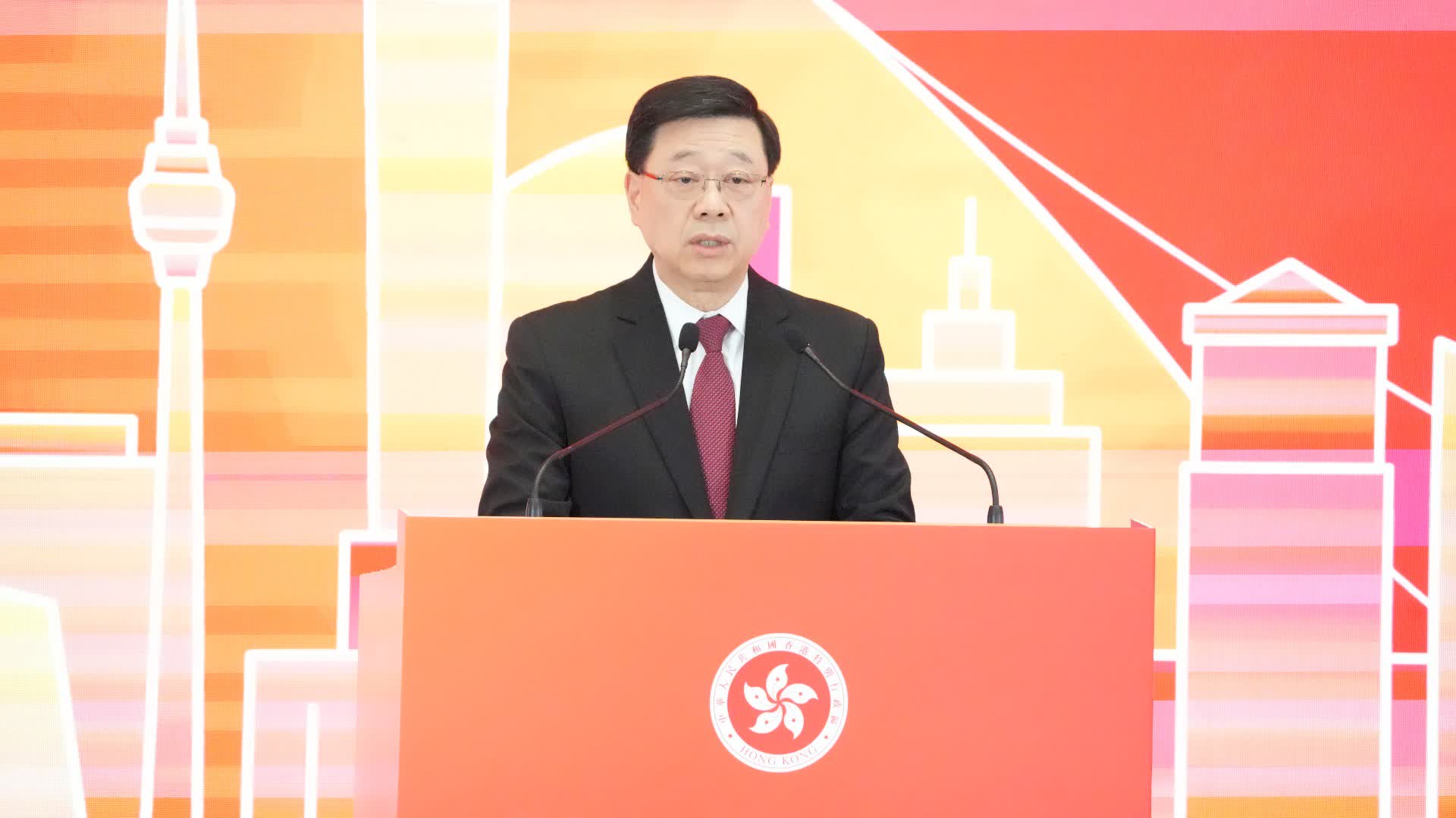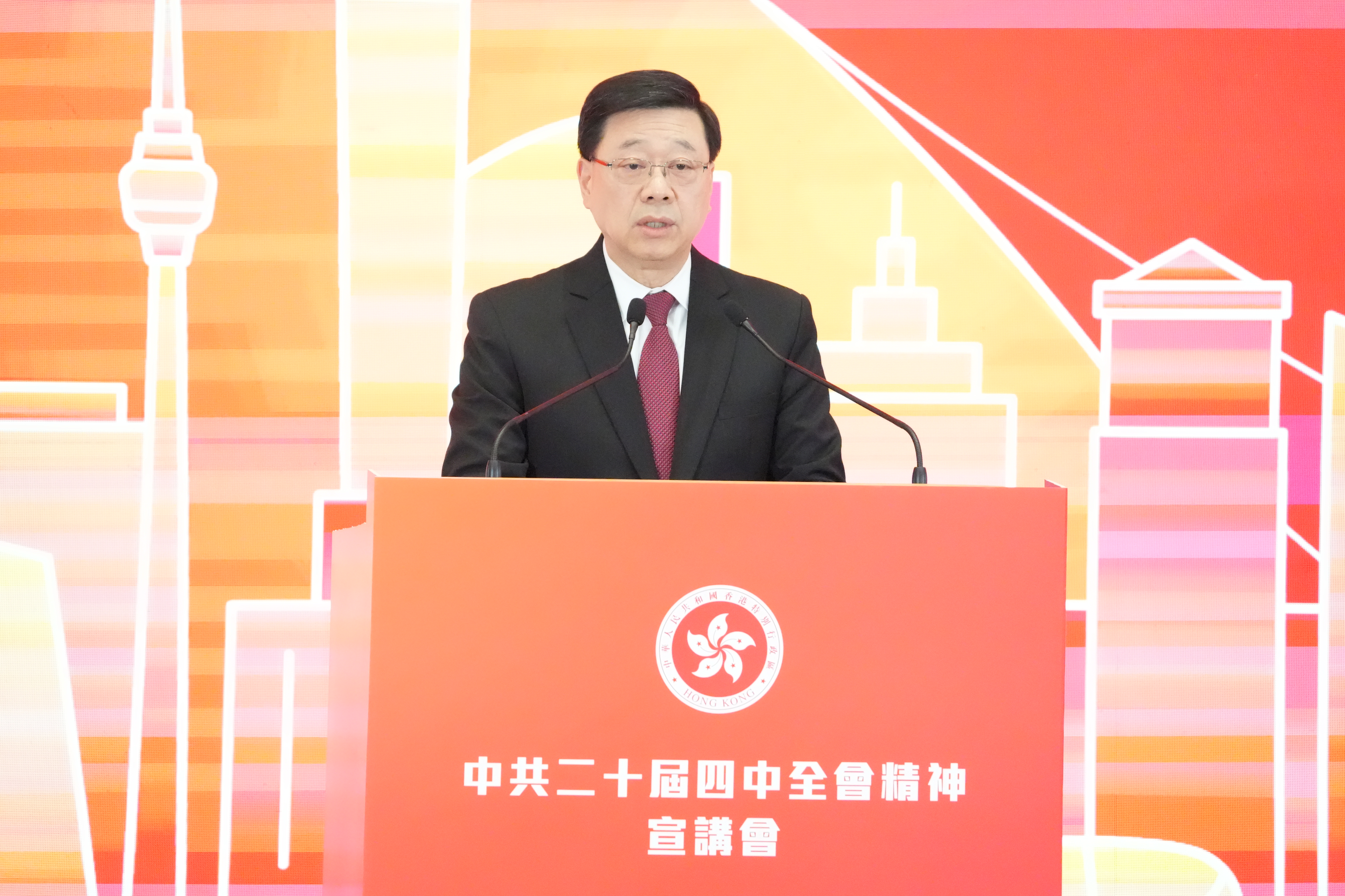 李家超表示,二十屆四中全會上月於北京順利閉幕後,他便主持了政府團隊研習會,與司局長等主要官員一同學習全會精神。今天中央宣講團在香港作主講,他和在座各位都熱切地期待侯建國和祝衛東兩位重量級主講嘉賓的精闢講解和深入分析。