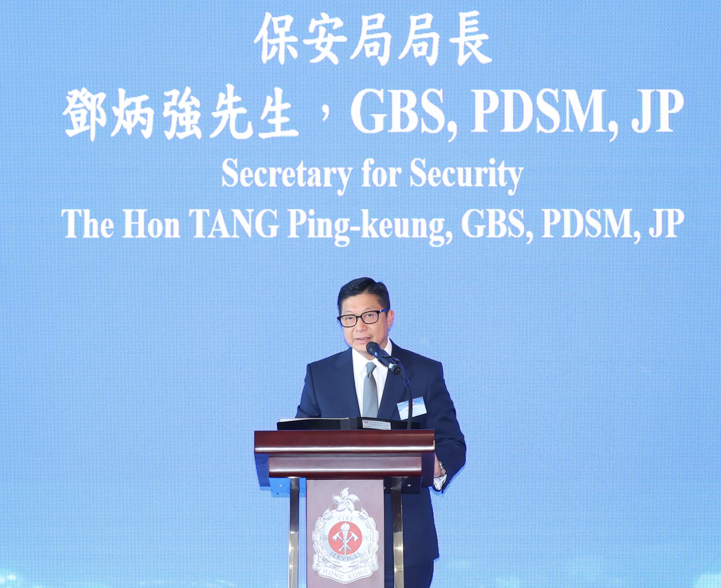 鄧炳強在典禮上致辭時說,氣候變化加劇令極端天氣越趨頻繁,強度亦更高。他指出水域救援是極具挑戰的高風險救援任務,是次會議的寶貴交流機會讓區內專才與前線人員加深互相了解,分享最優質的實戰經驗,令協作基礎更為穩固。他又寄望香港消防處為國家災害管理作出切實貢獻,加深國際合作,跨地域攜手守護生命。