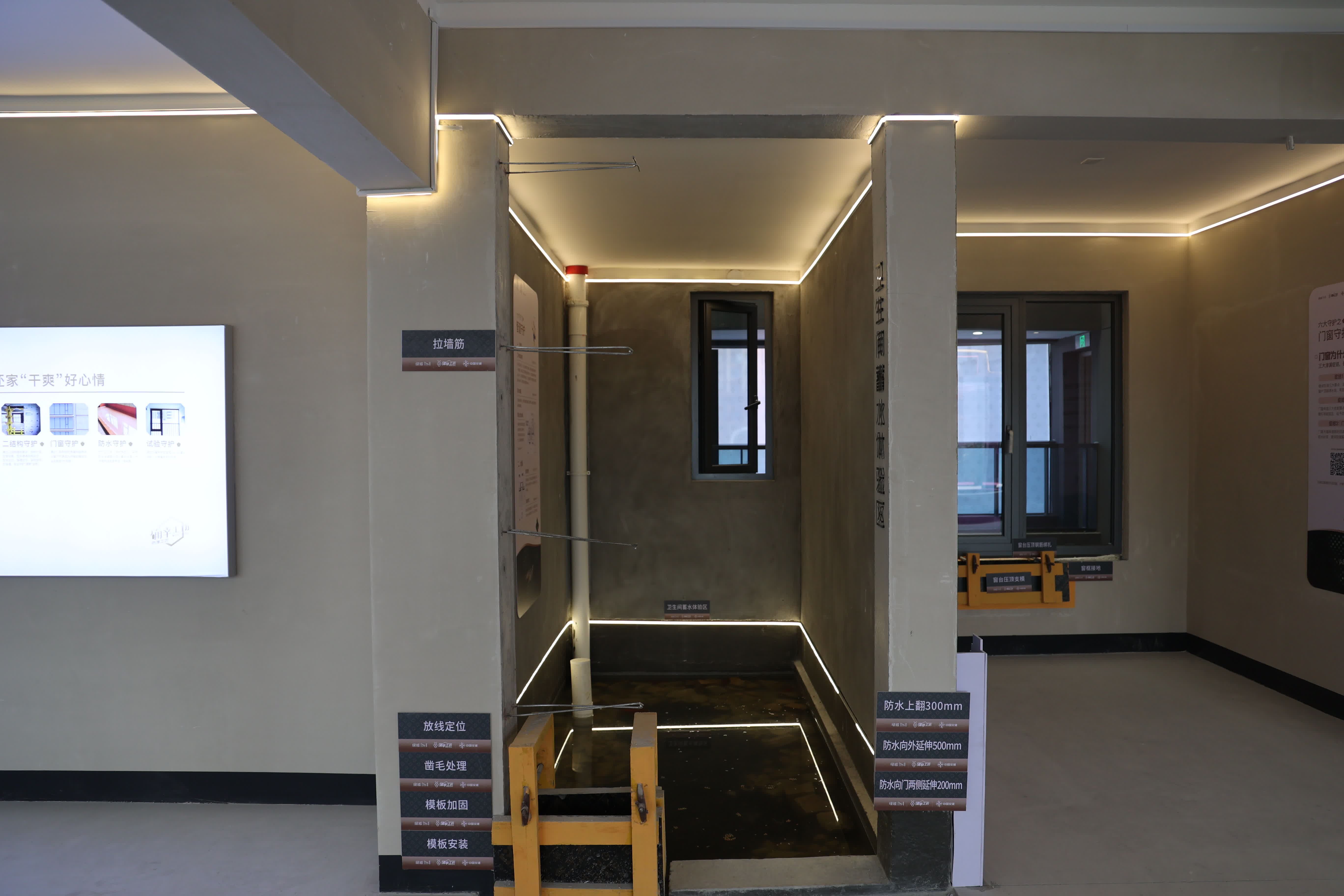 走進項目防滲工坊樣板區,各項精細工藝一目了然。在管道根部採用承插止水節,形成「止水環+承插密封」的雙重防護,衞生間門檻創新整體澆築技術築牢「防水堤壩」,全方位阻斷滲水隱患。項目質量負責人李文濤在防滲工坊樣板區介紹:「單防滲漏工序就有55道要求,每道工序都要簽字確認,最後還須通過持續1小時的淋水試驗,不合格直接返工,相當於為房子穿上定製雨衣,讓滲水點無處可鑽。」