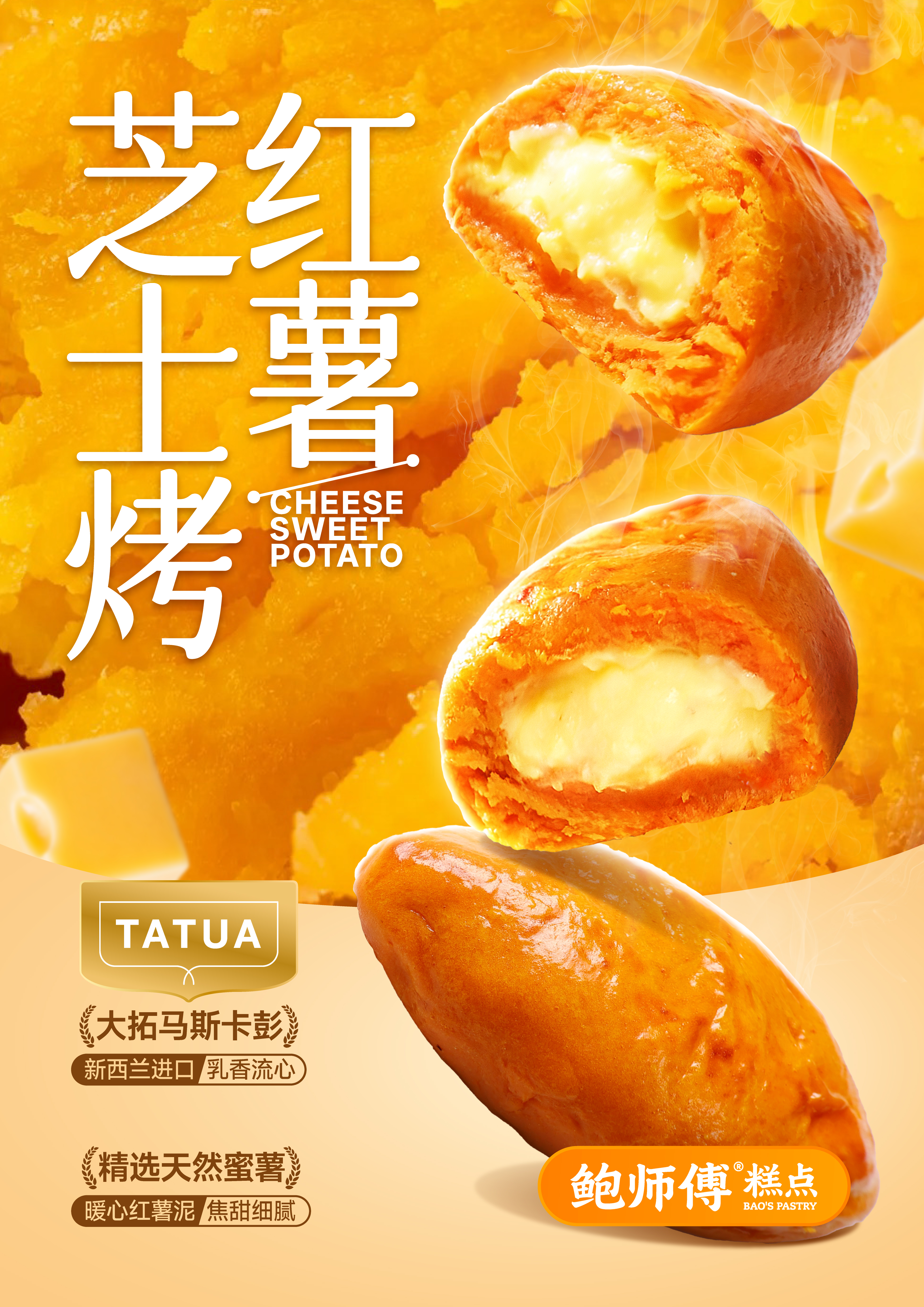 此次活動的明星產品芝士烤紅薯,精選天然蜜薯為原料,經慢火烘烤後,紅薯泥焦甜細膩、入口即化;內層包裹新西蘭進口馬斯卡彭奶酪,香甜流心、絲滑不膩。濃醇芝士與甘甜紅薯的完美融合,既保留了傳統風味的溫暖,又融入了現代烘焙的創新靈感,成為冬日裏備受追捧的「治癒系」美食。